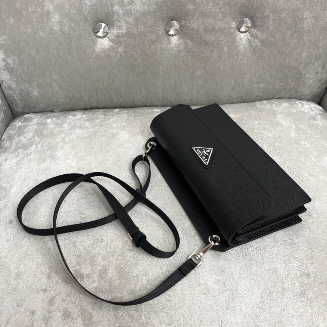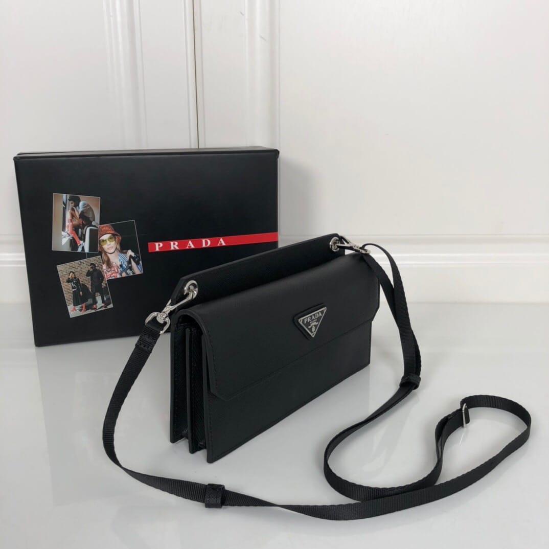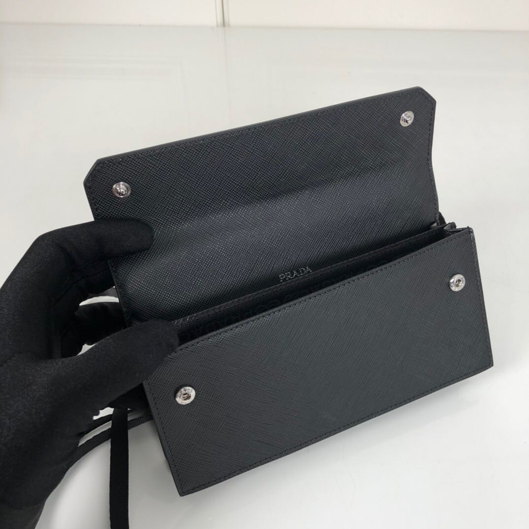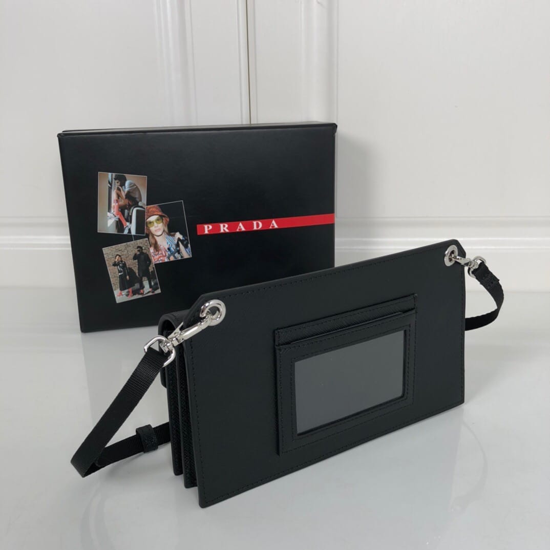 P家??十字纹手机包,型号2ZH107,原单品质,进口saffiano十字纹制作,尺寸18.5×10×4.5cm,prada今年的小配件出得都很有灵魂呀~这个手机包简约时尚,可放置手机还有卡片,大容量放置两台大号手机完全没问题,男女通用,特别适合潮流人士凹造型,夏日出门必备单品?
