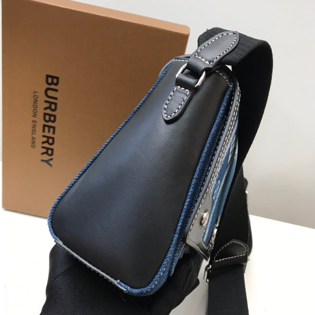 【B家顶级原单】斜背包,精选牛仔布面料与缉明线皮革拼接制成,
