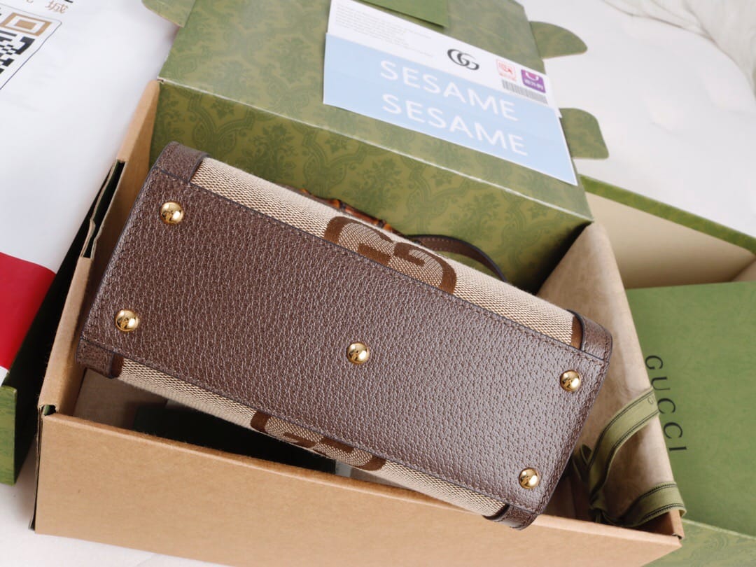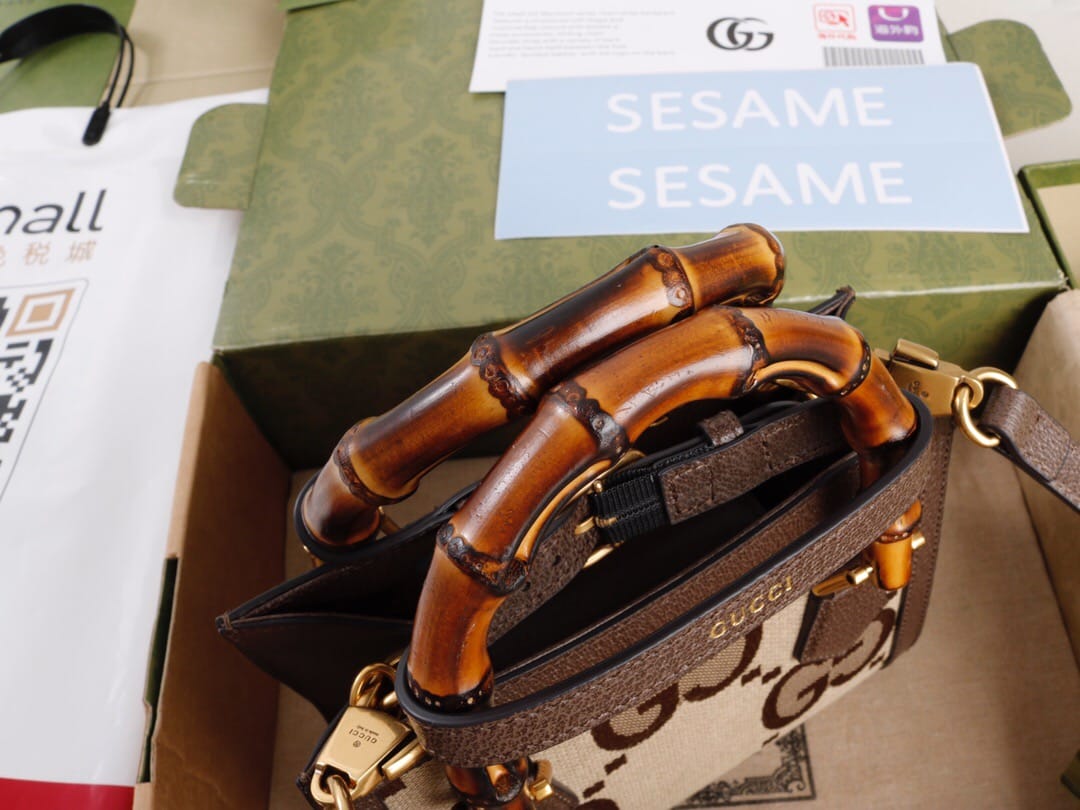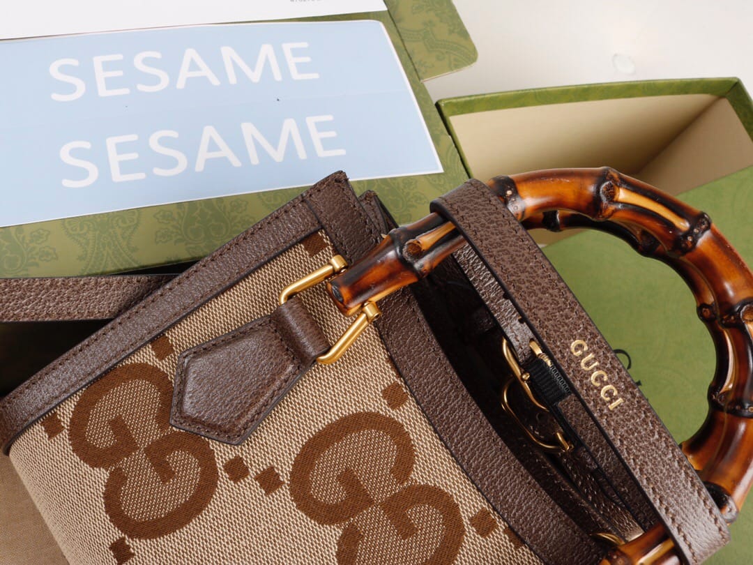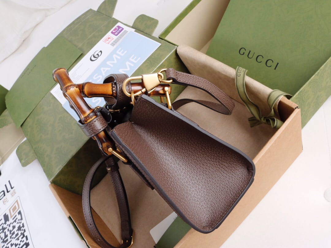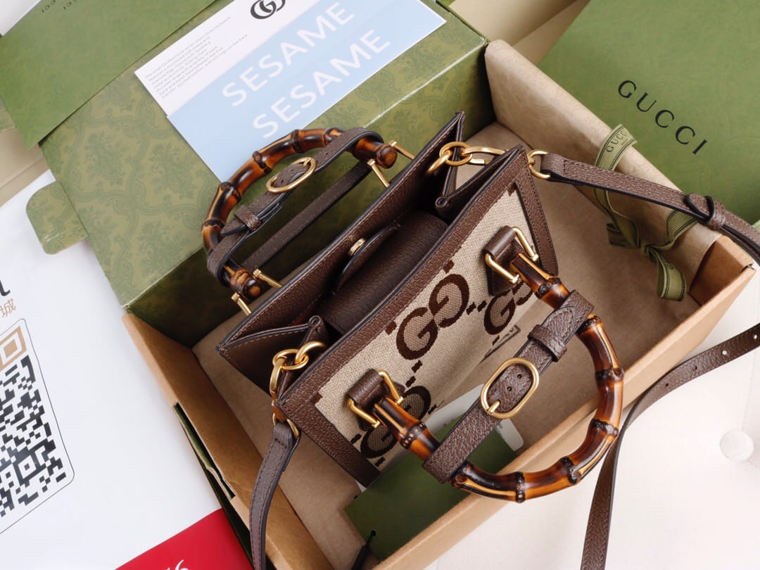 少量现货中?】 简介:每个系列运用现代视角重新推陈出新,以持续不断的改变及实验诠释品牌标识。这款双G图案以有别于以往的夸张手法呈现经典双G字母交织图案,在《Aria-时尚咏叹调》系列中生动演绎多款成衣和配饰单品。这款 Diana竹节迷你托特包配有棕色皮革滚边。 ?型号?655661 ?材质?采用专柜质感帆布面料配进口牛皮,对版打磨五金?纹路清晰易见、质感细腻最高品质! ?尺寸?20x16x10cm