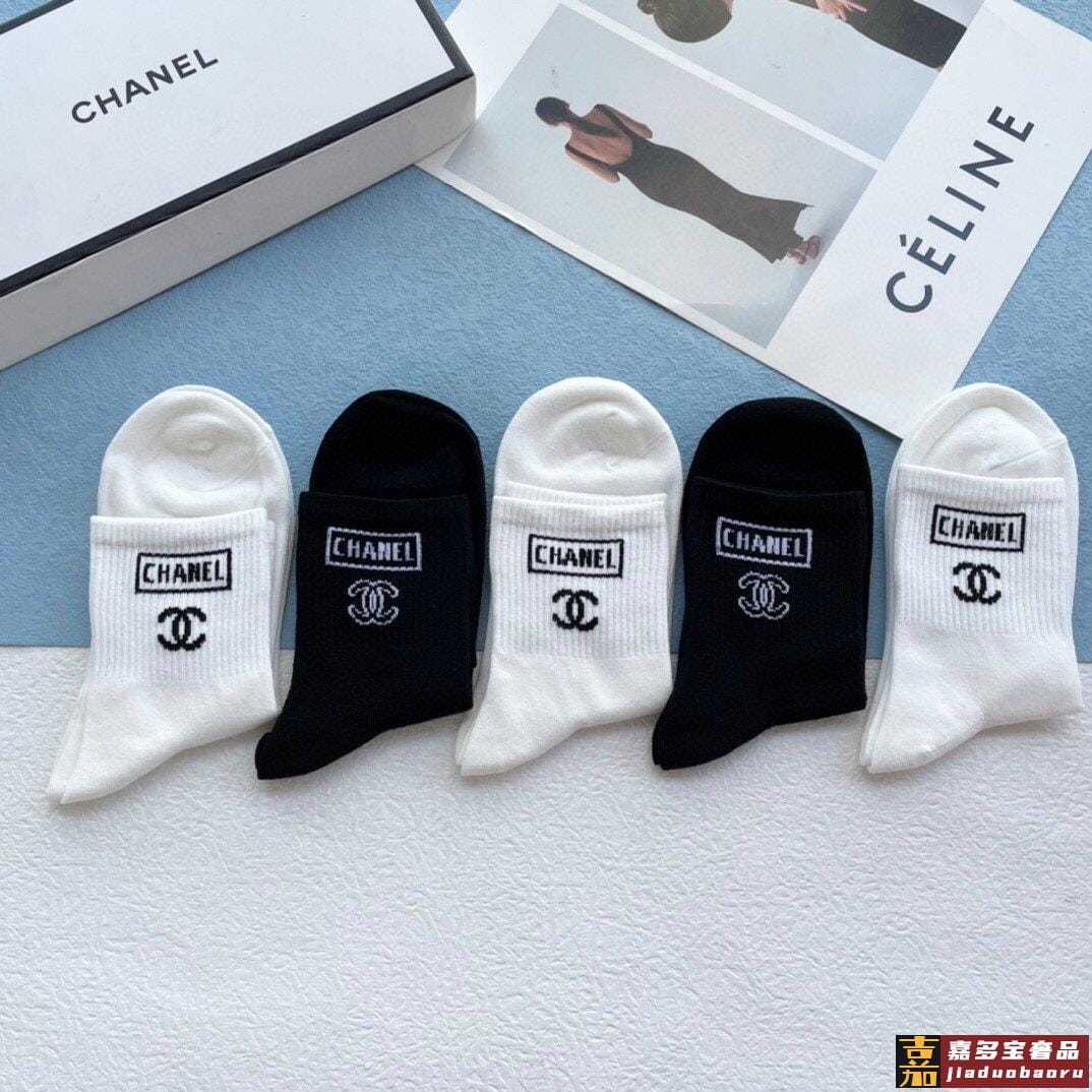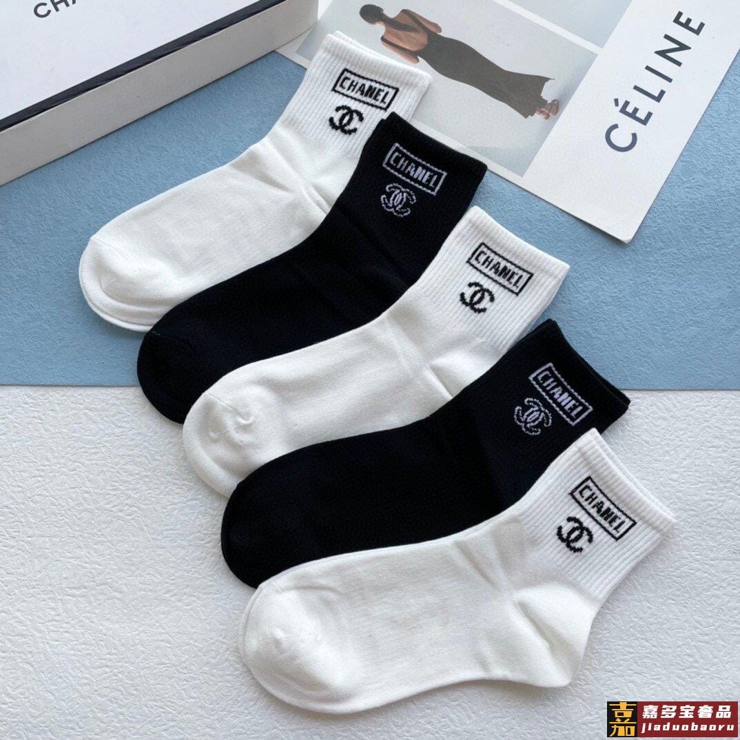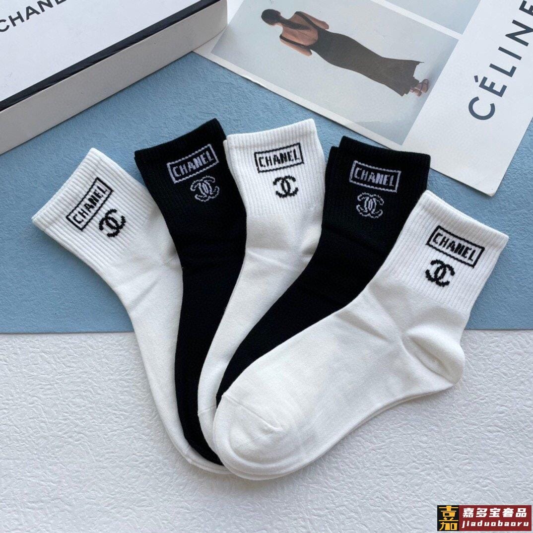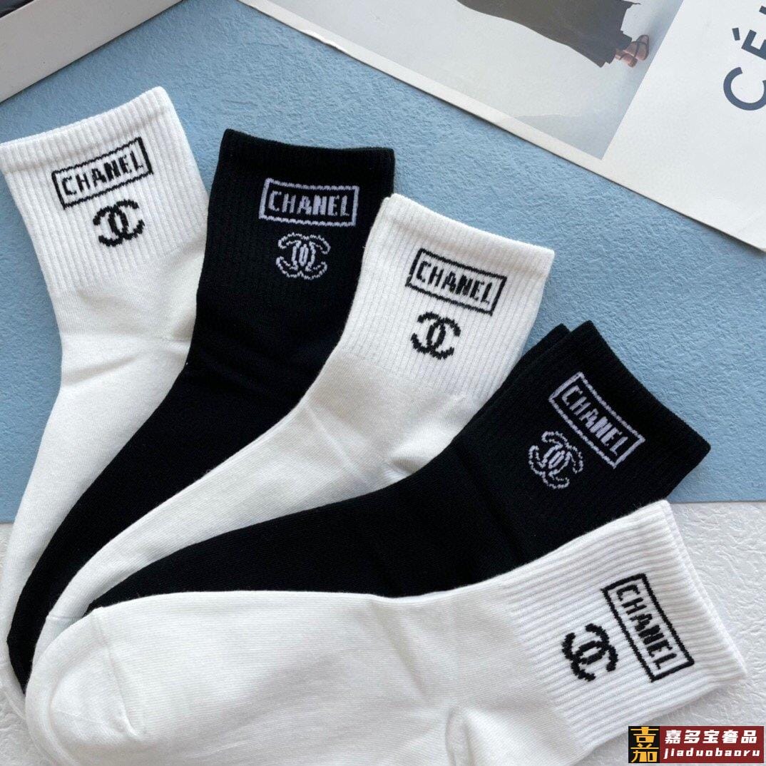 配包装一盒五双香奈儿爆款中筒袜高版本好看到爆炸欧美大牌中筒袜