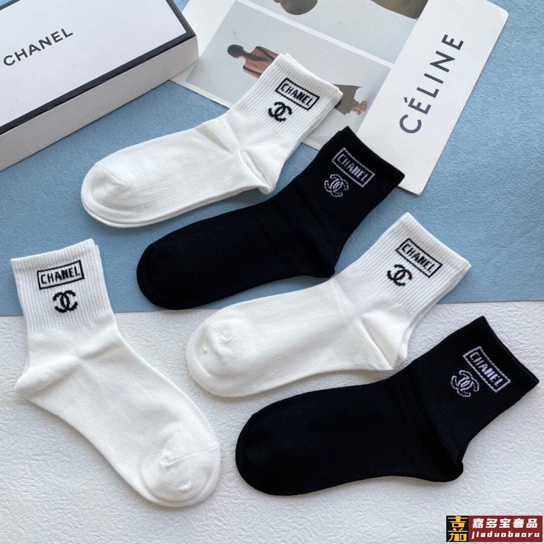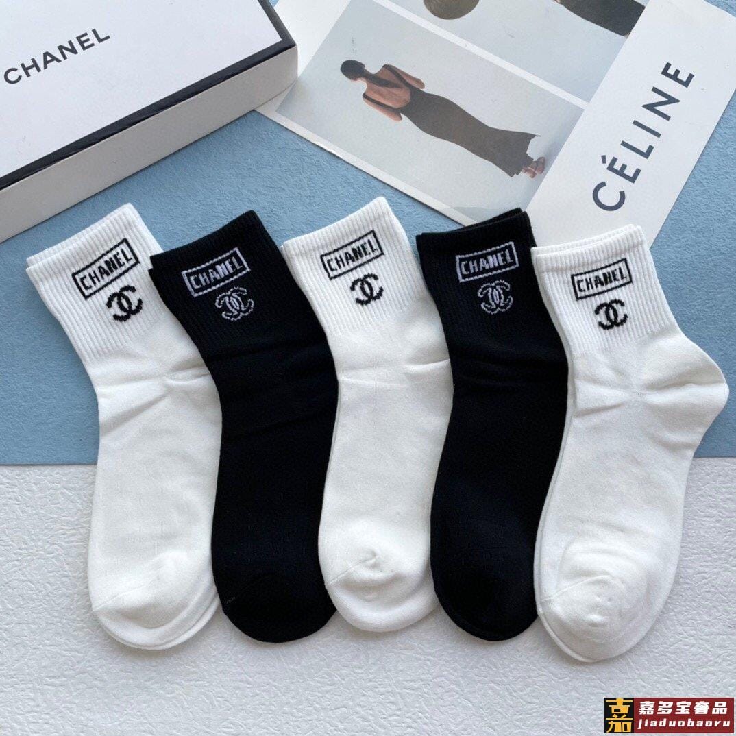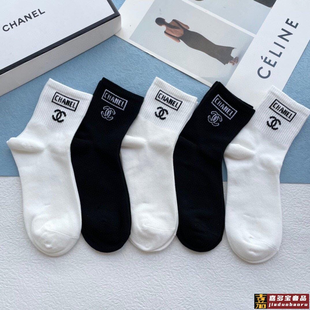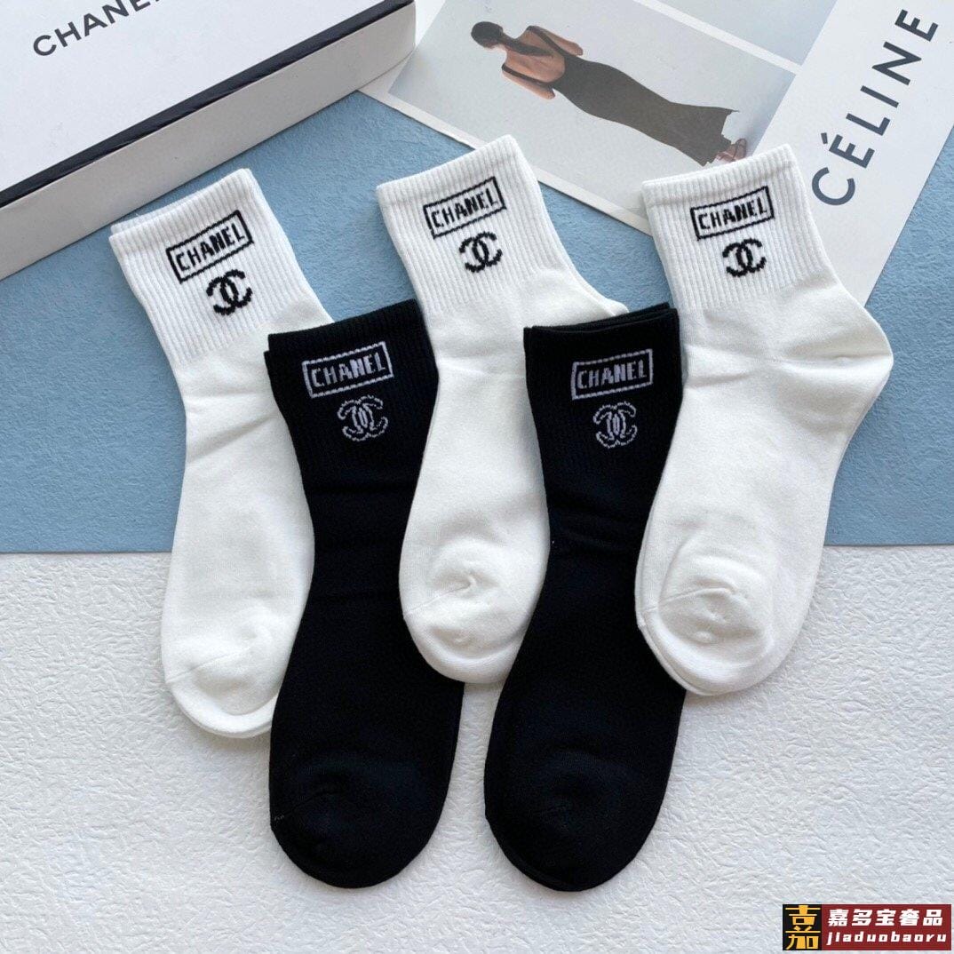 配包装一盒五双香奈儿爆款中筒袜高版本好看到爆炸欧美大牌中筒袜