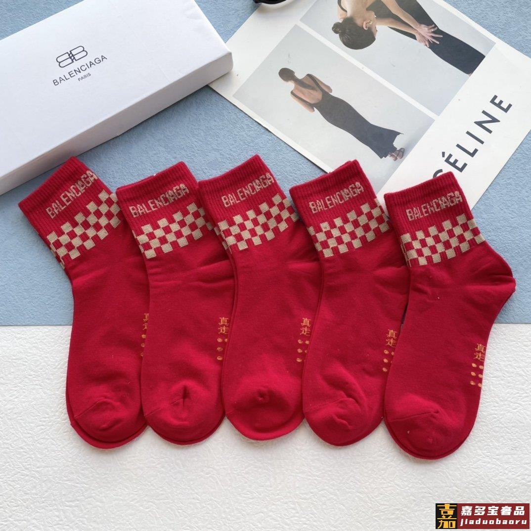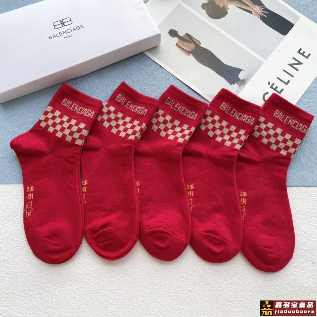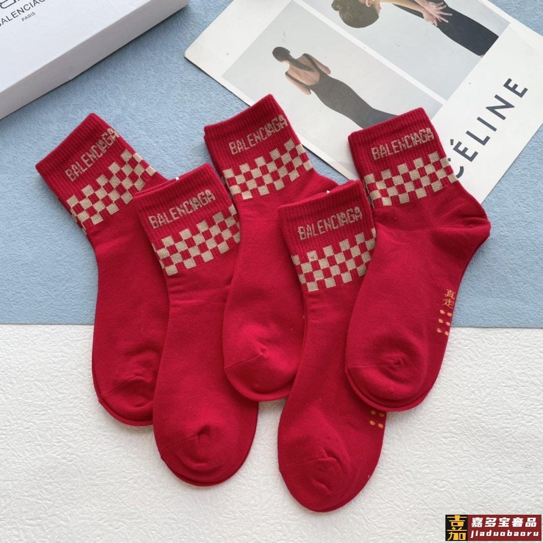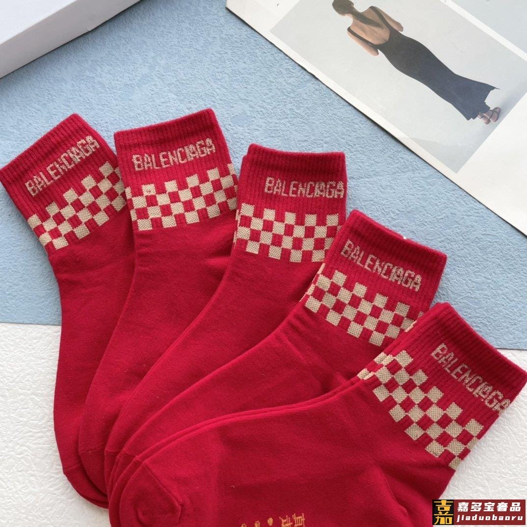 配包装一盒五双巴黎世家欧美大牌爆款红色过年中筒袜高版本好看到