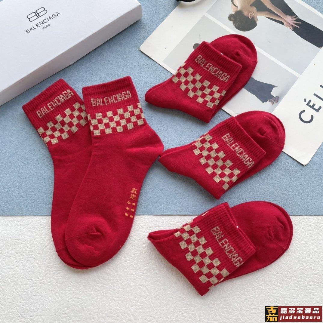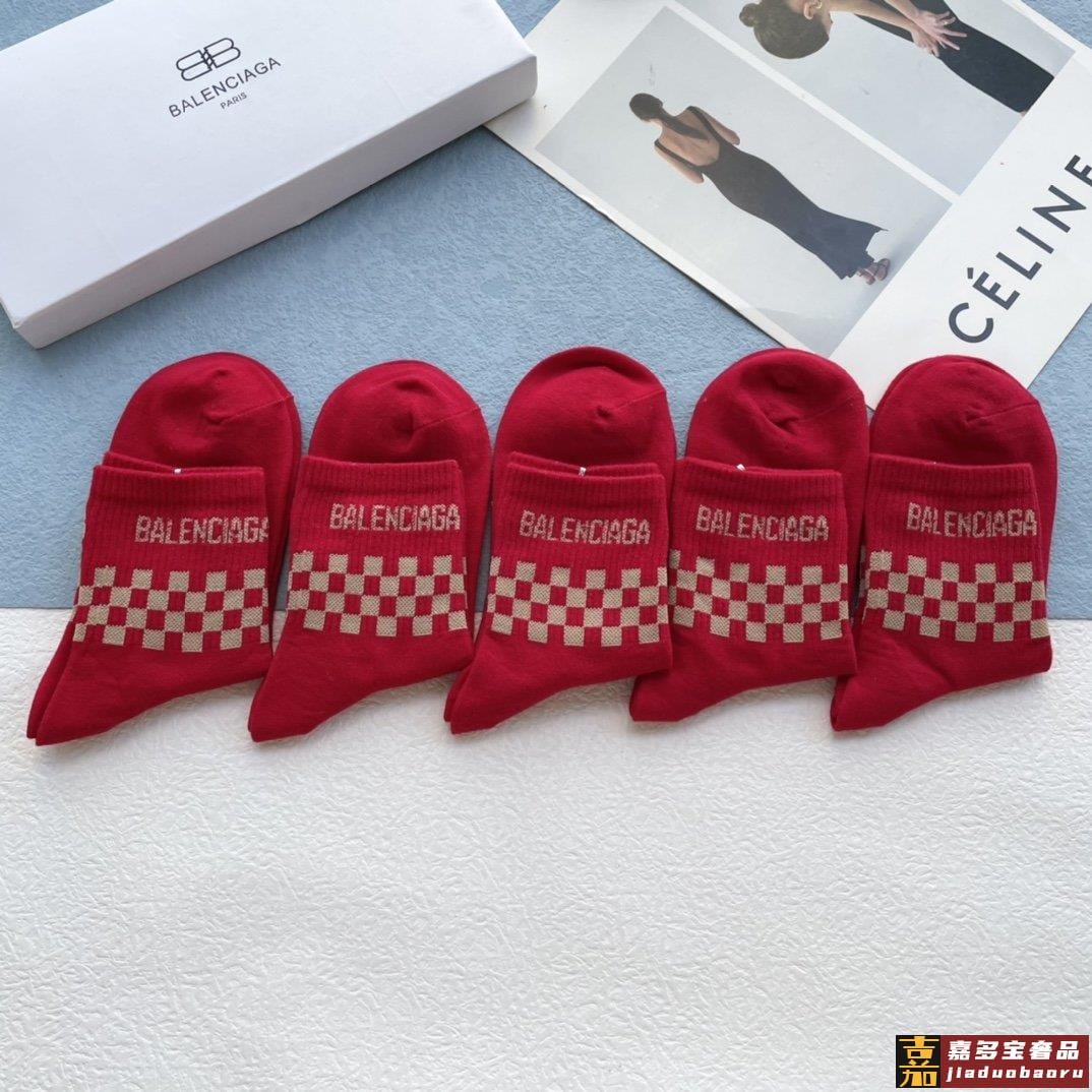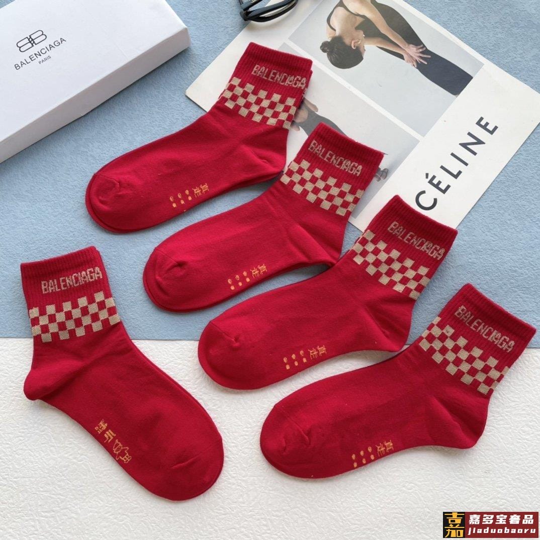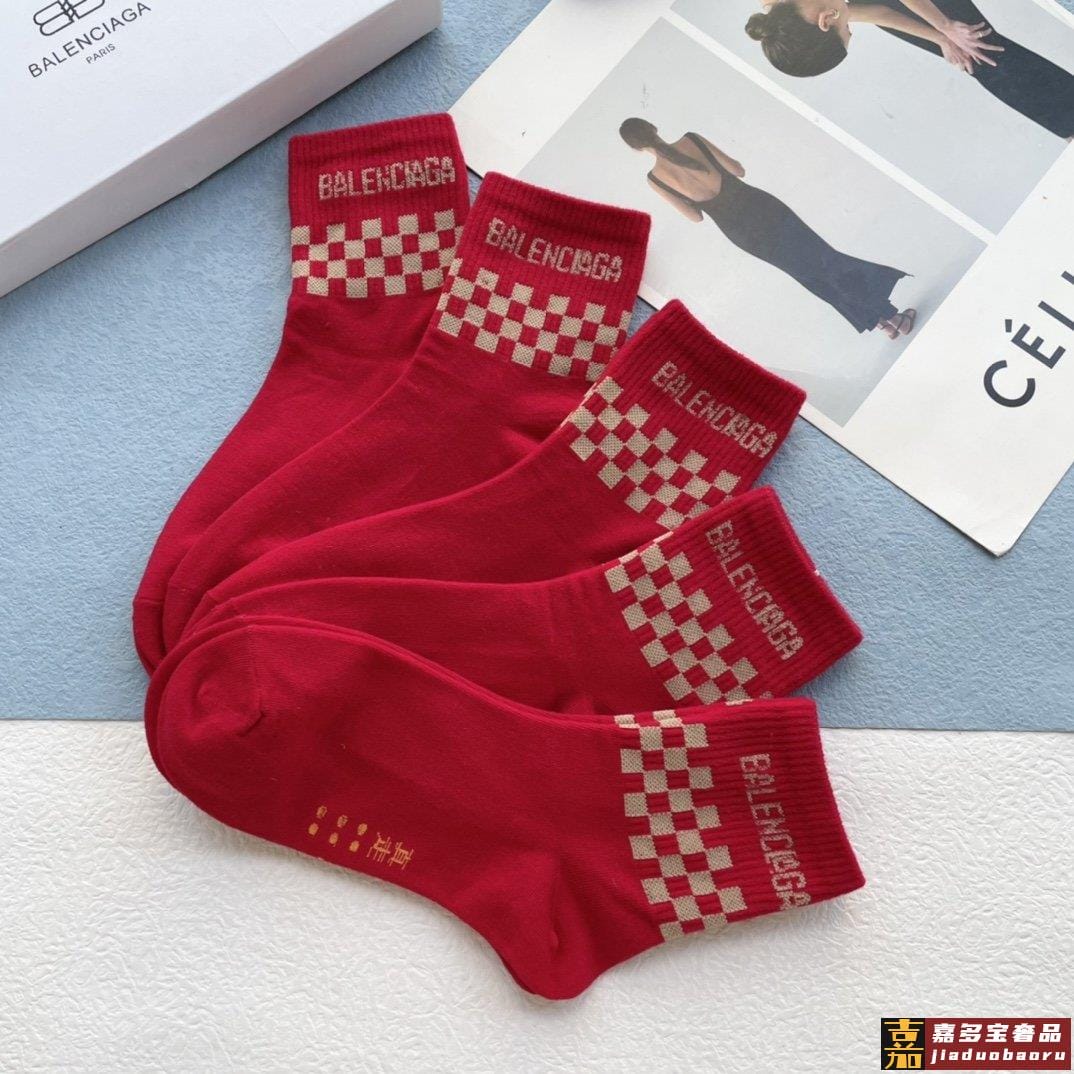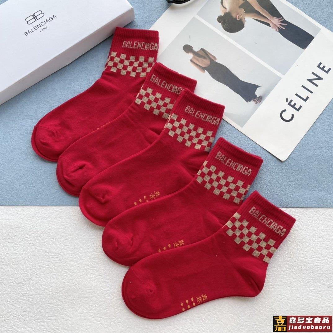 配包装一盒五双巴黎世家欧美大牌爆款红色过年中筒袜高版本好看到