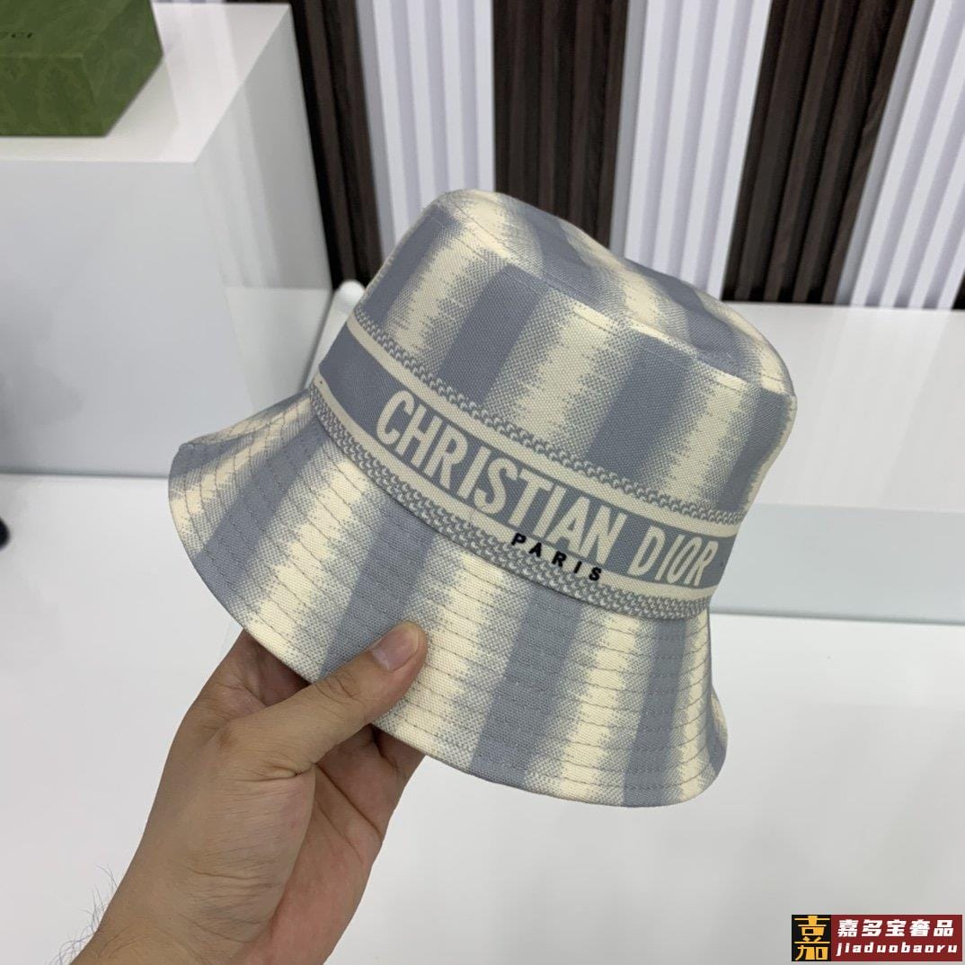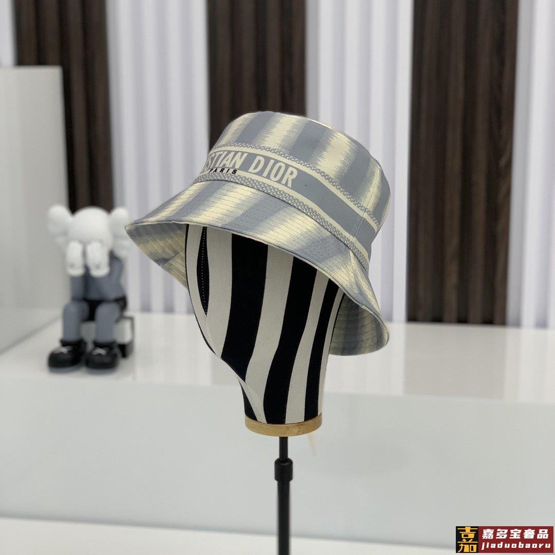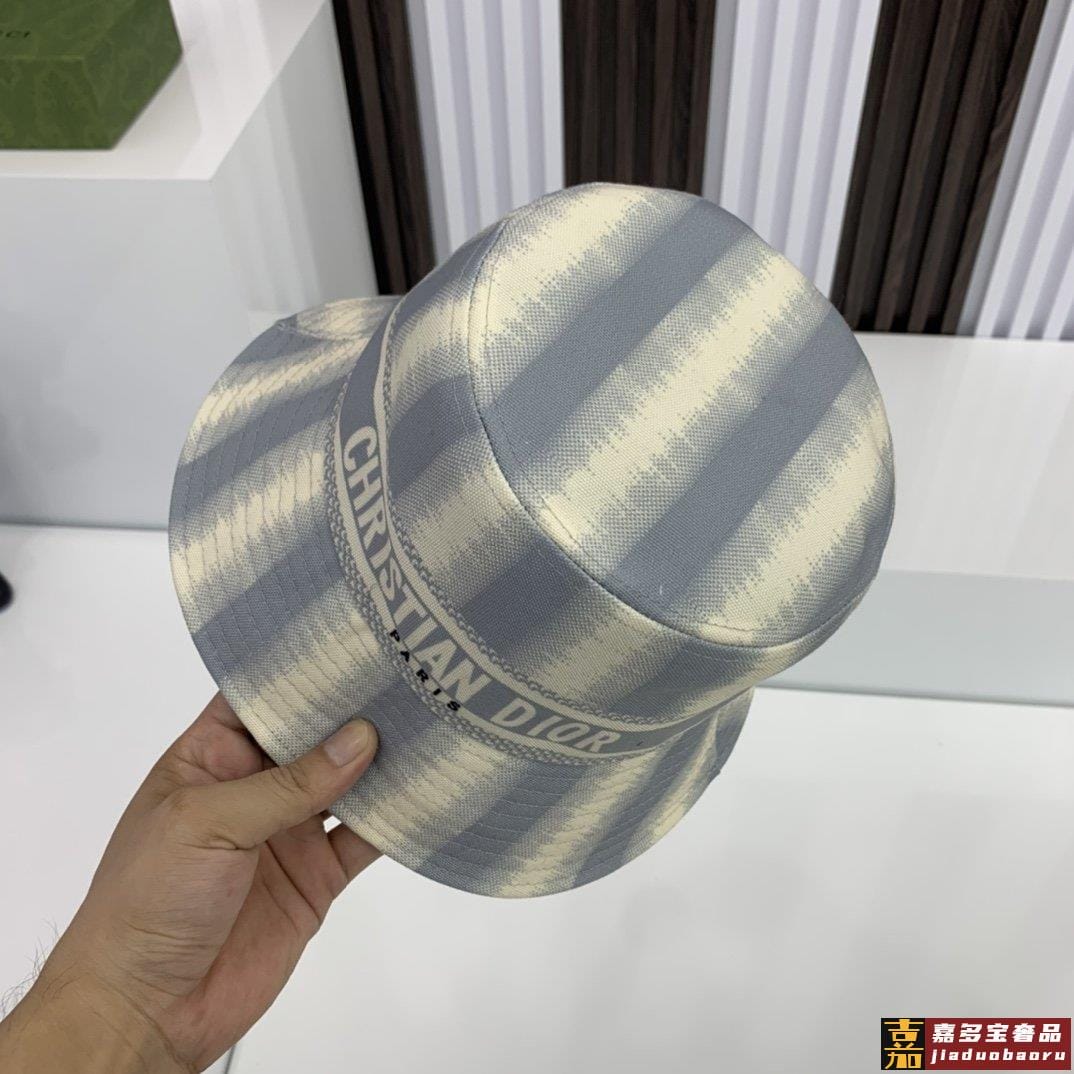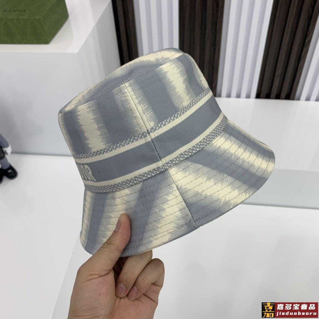 迪奥新款印花字母织带帆布渔夫帽这款海军蓝色茹伊印花桶帽突显的
