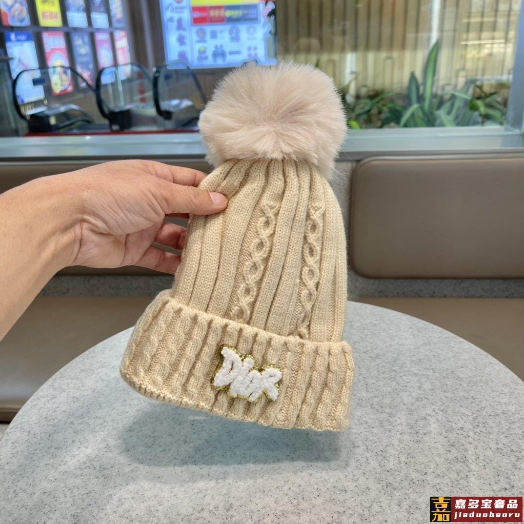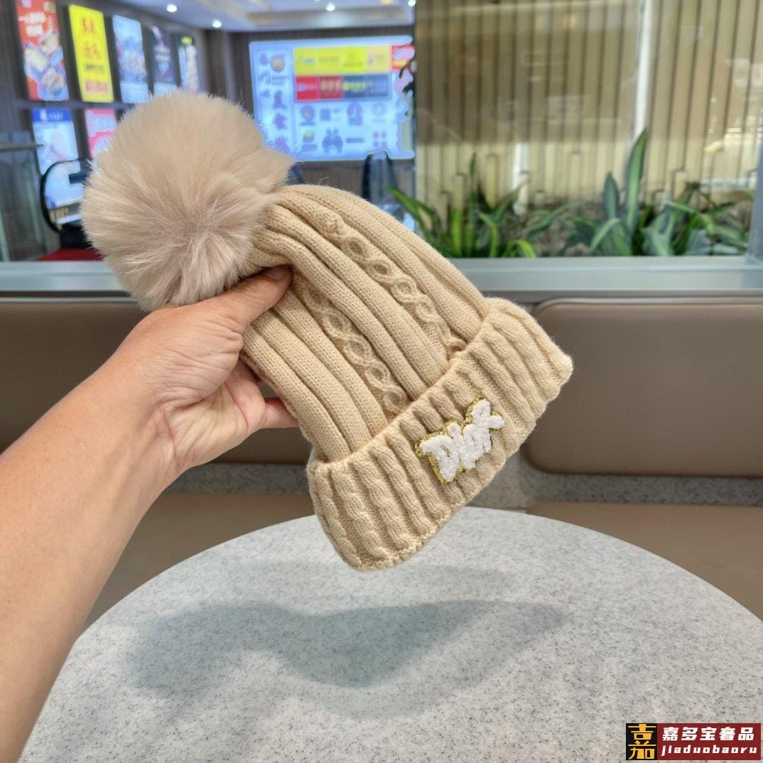 迪奥秋冬新款兔毛毛线帽秋冬保暖针织帽质感细腻柔软面料厚实 <