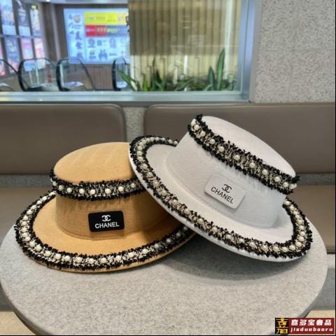 香奈儿秋冬新款羊绒毛帽檐带珍珠网红爆款草帽盆帽大帽檐遮阳防晒