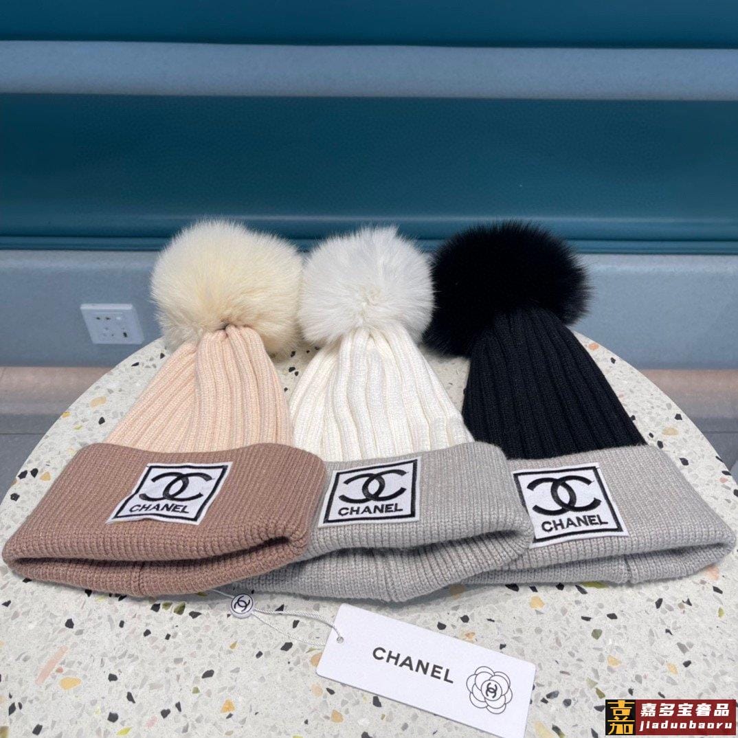 香奈儿兔毛毛线帽专柜新款上新小香毛线帽女神必备休闲百搭