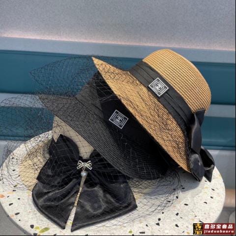 香奈儿小香徽章复古草帽网纱拼接帽檐超美丽的新款经典时尚