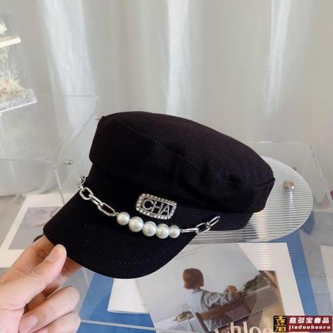 小香新款重工链条珍珠拼接军帽报童帽奢华重工系列暗黑朋克风时尚