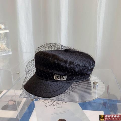 小香新款重工网纱丝绸军帽报童帽奢华重工系列暗黑朋克风时尚炸街