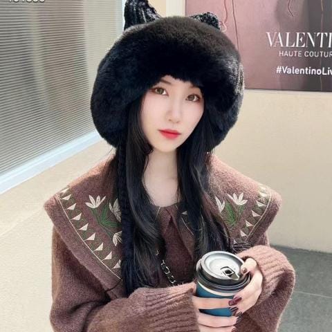 秋冬圆顶兔毛毛绒盆帽渔夫帽时尚年轻潮牌今年特别火的系列时尚雅