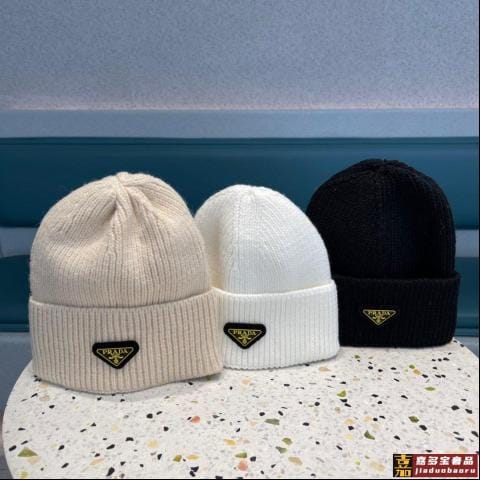 普拉达新款倒三角标针织羊毛毛线帽高品质定制羊毛简约帅气新标志