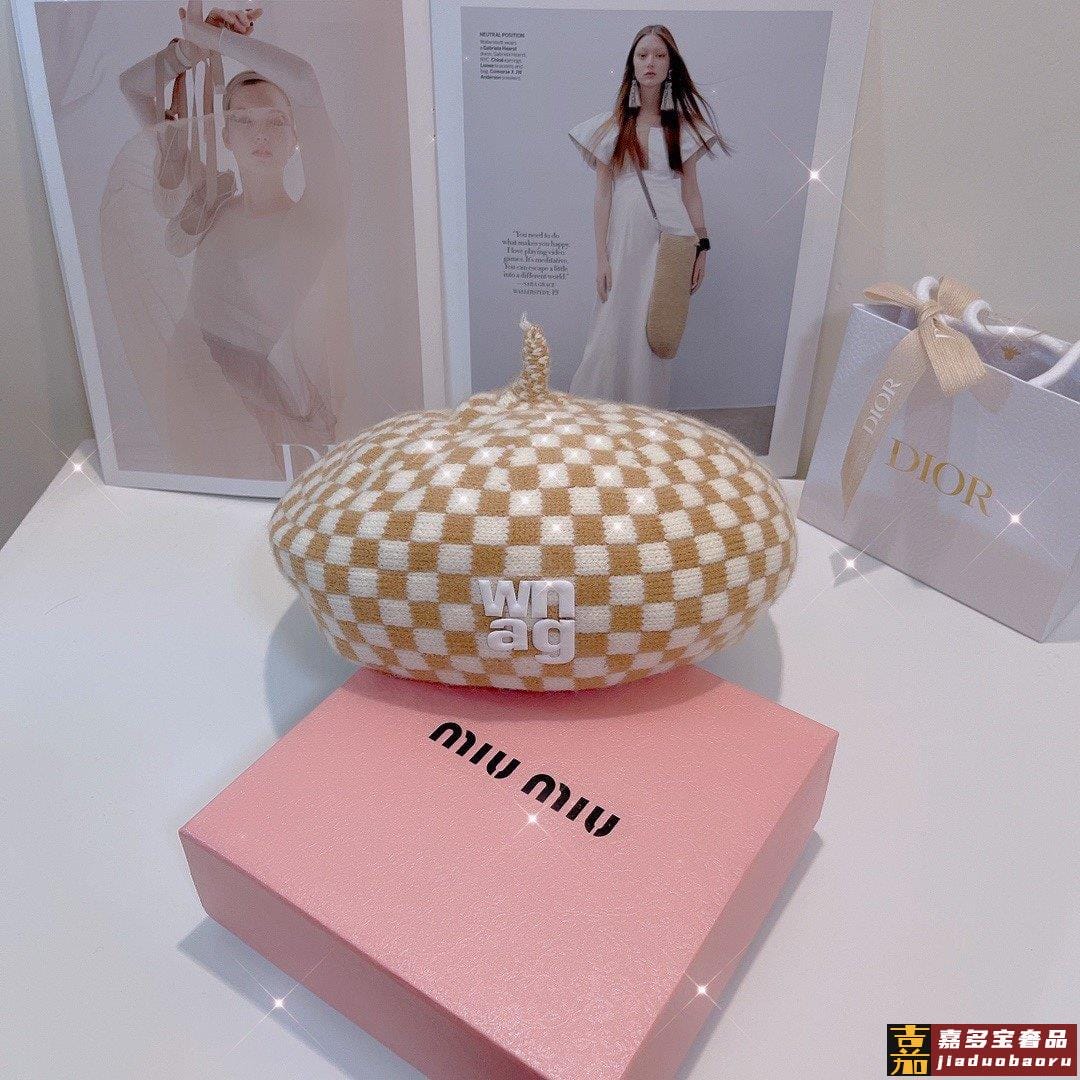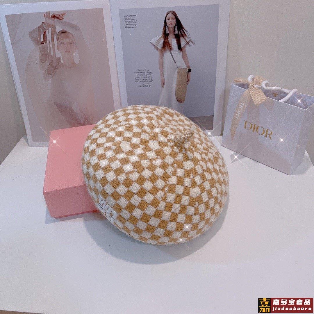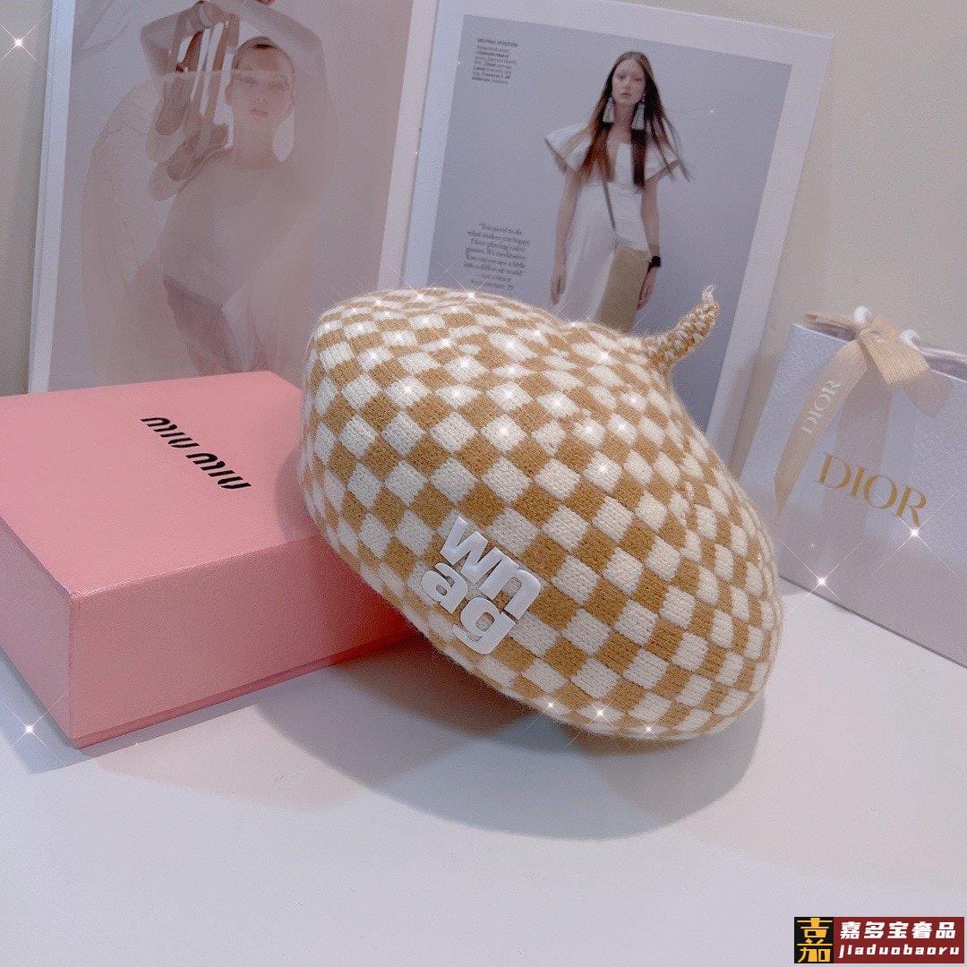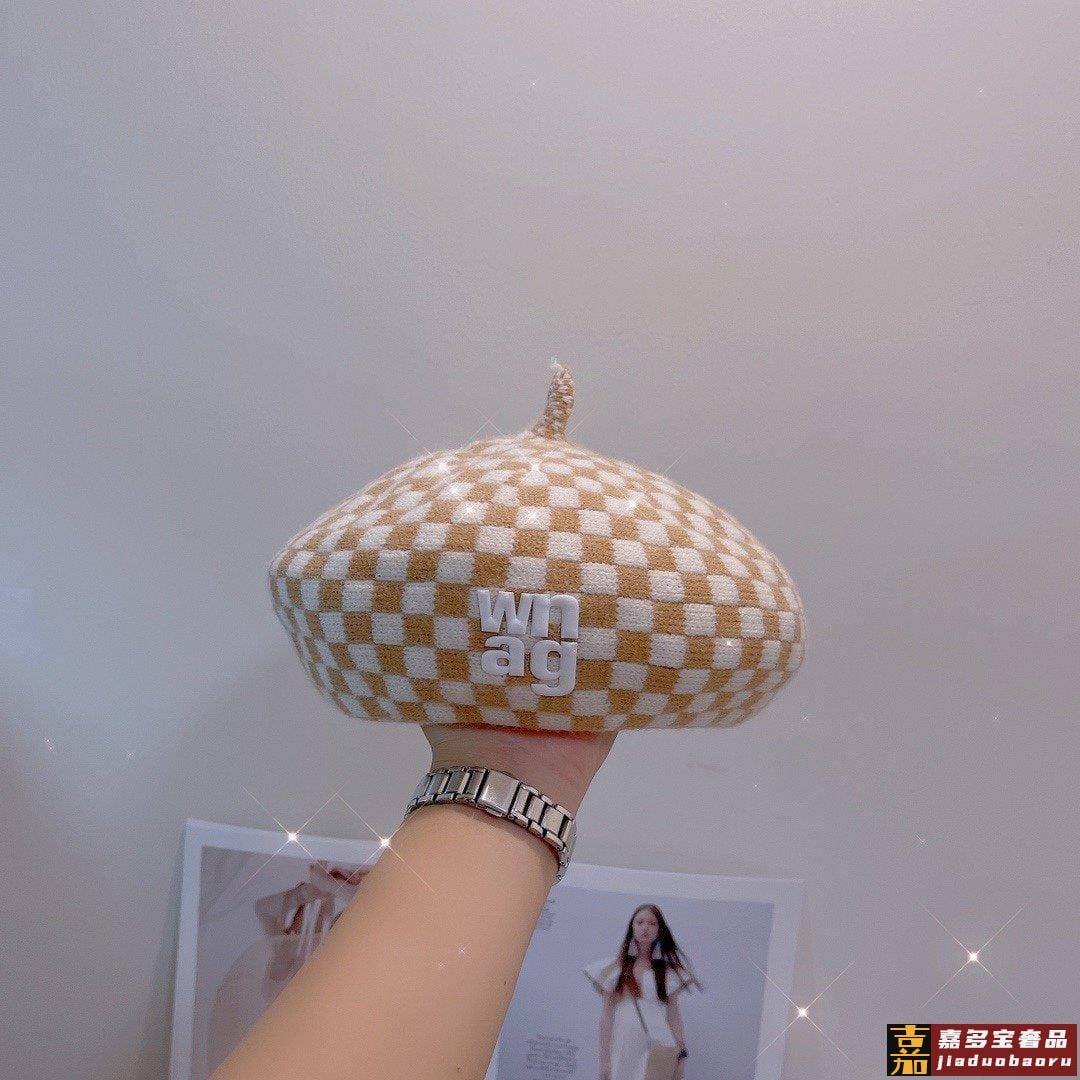 亚历山大棋盘格羊毛针织贝雷帽画家帽优雅文艺范有机羊毛针织贝雷
