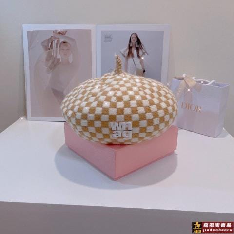 亚历山大棋盘格羊毛针织贝雷帽画家帽优雅文艺范有机羊毛针织贝雷
