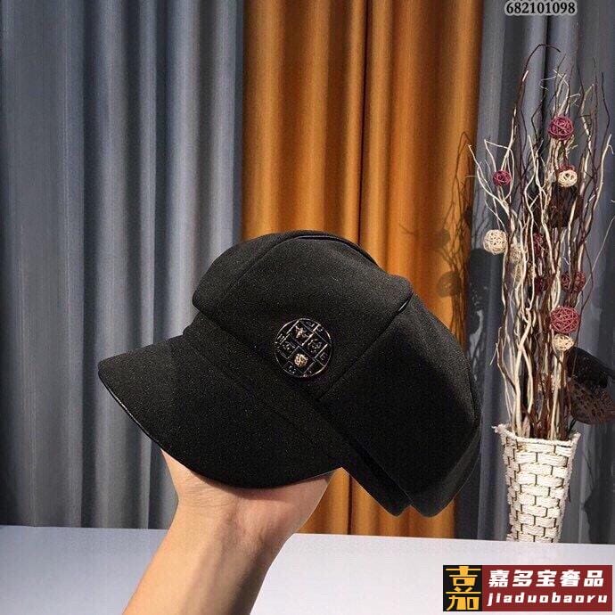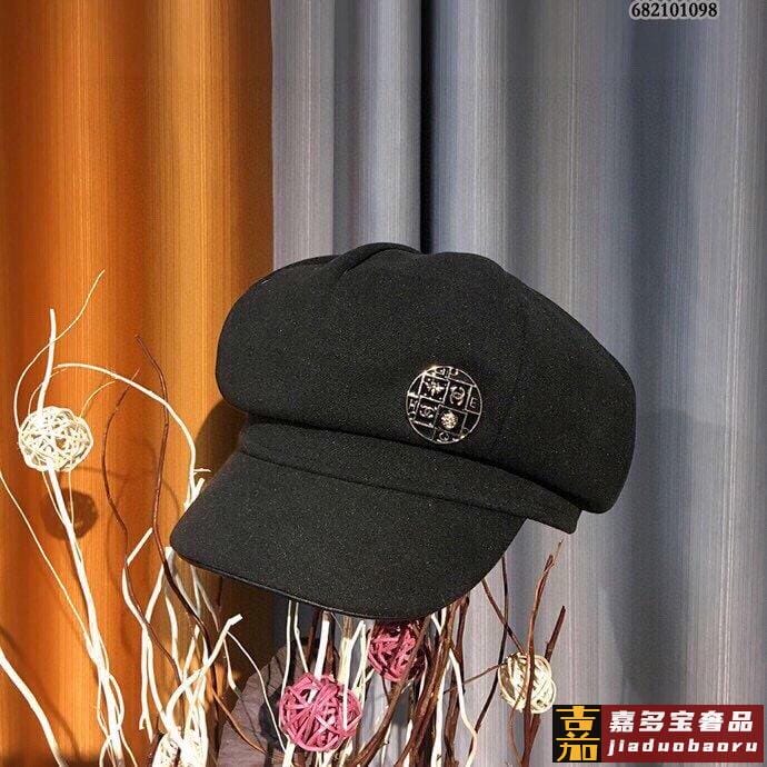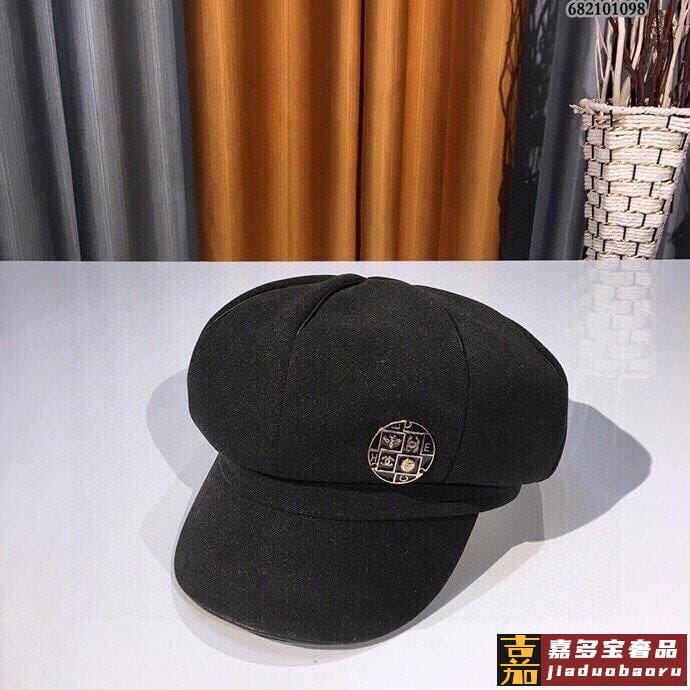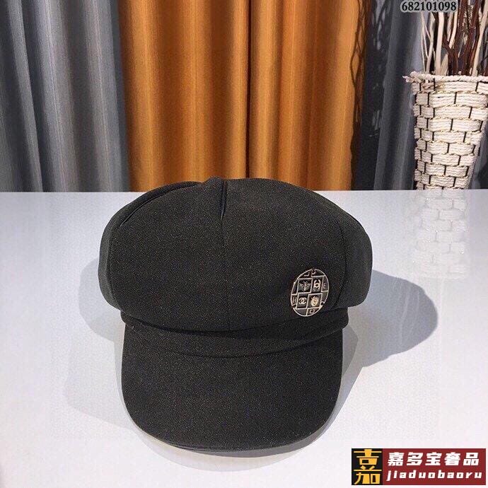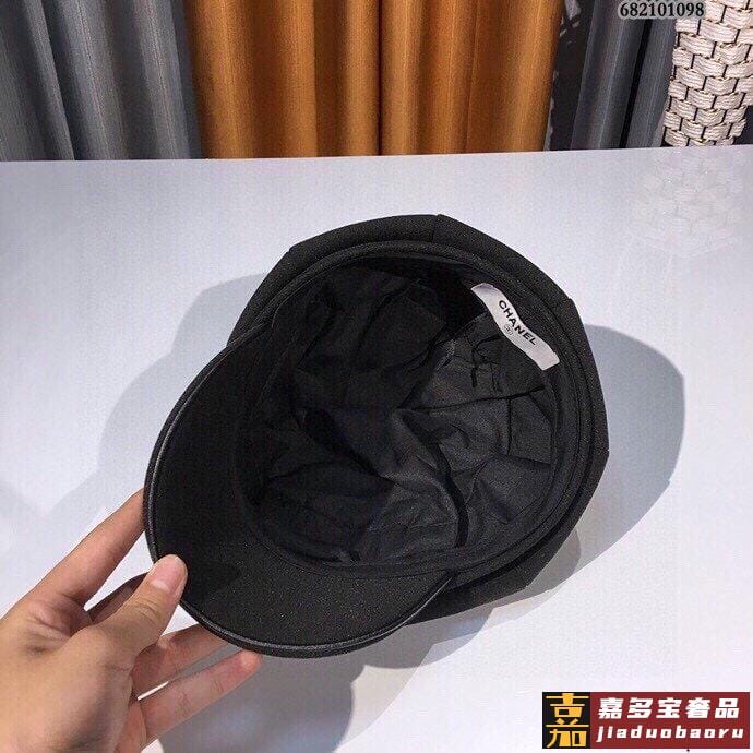 香奈儿冬新款羊毛拼接皮质八角帽混羊毛帽身手感很柔软配戴舒适度