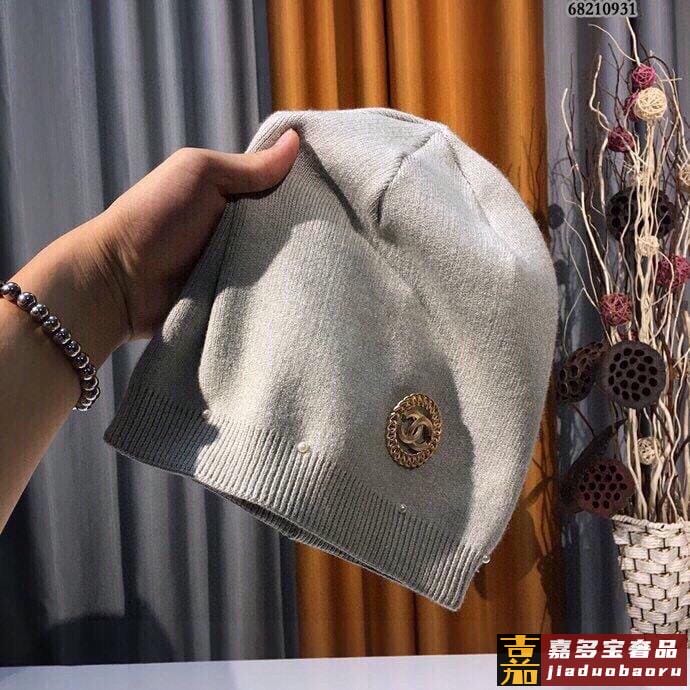 香奈儿新款甜美风毛线帽子女士冬季可爱套头帽保暖加绒套头帽 <