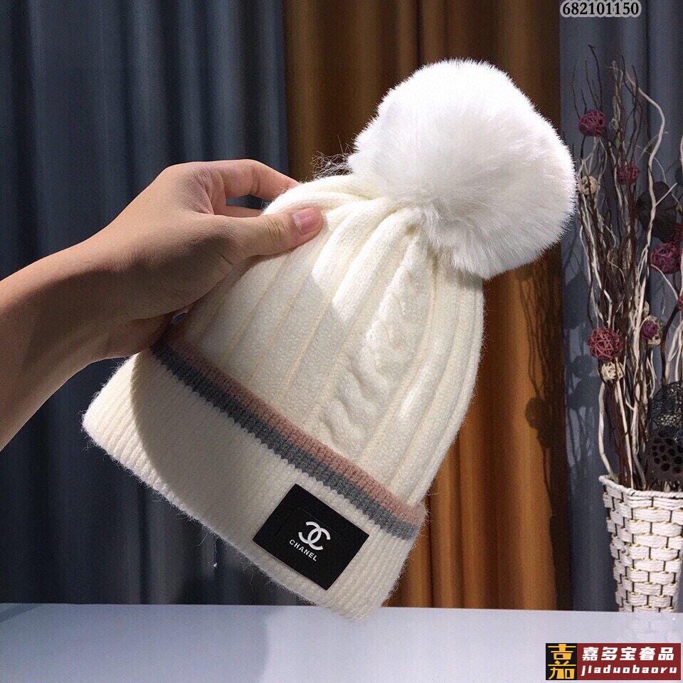 香奈儿兔绒毛线帽狐狸毛球保暖又时尚大方看到收的单品质量超赞