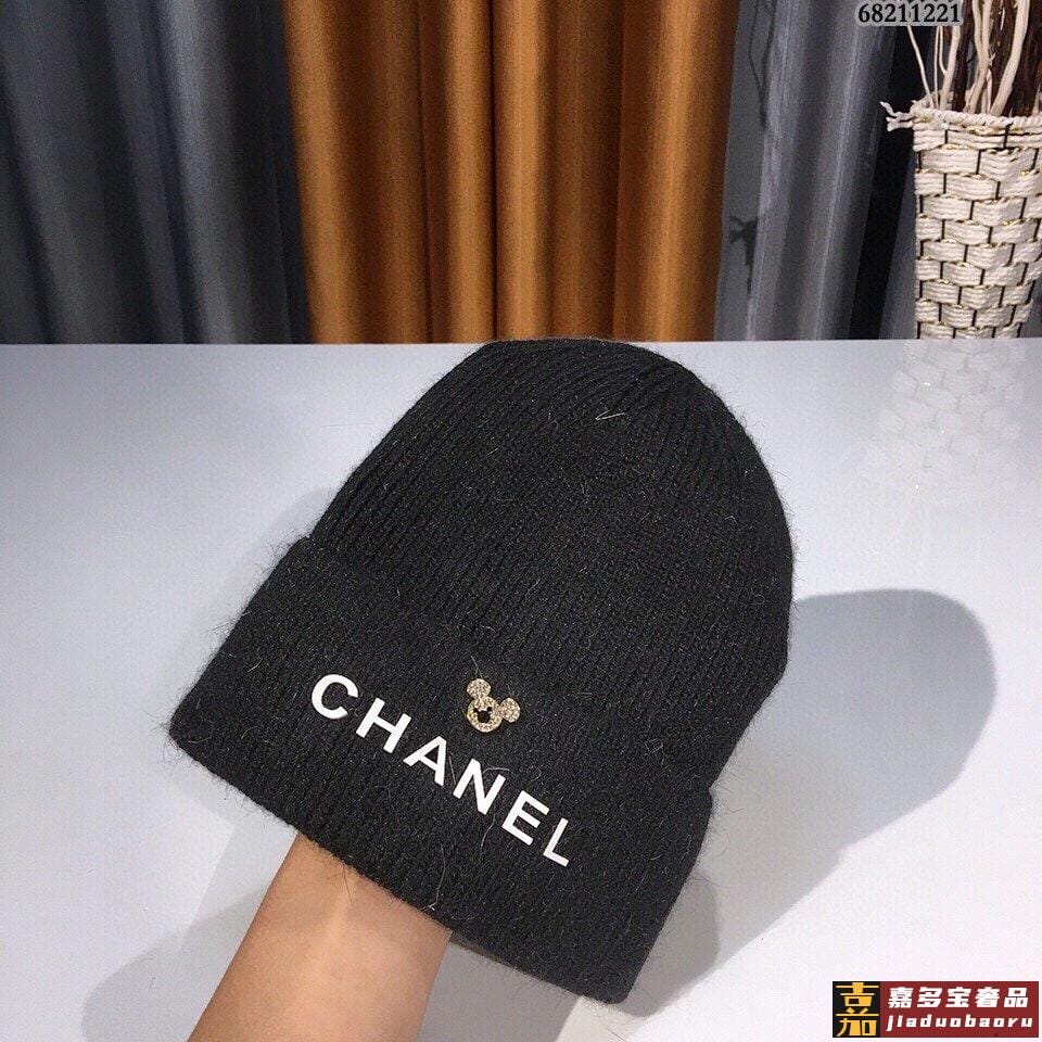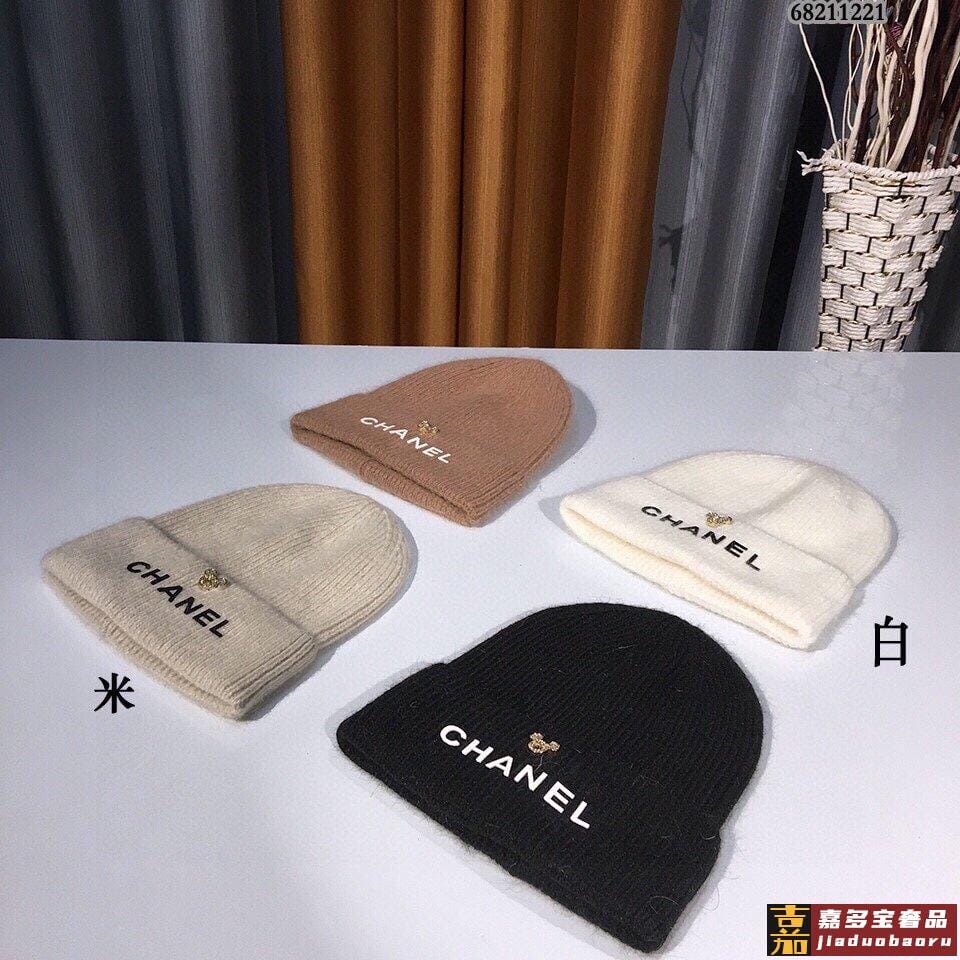 香奈儿新款甜美风毛线帽子女士冬季可爱套头帽保暖加绒套头帽 <