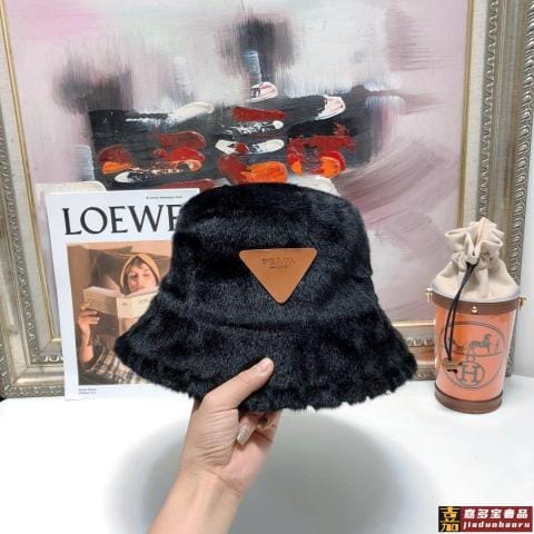 普拉达倒三角标新款兔毛渔夫帽保必暖备卡哇毛伊茸茸的超级好看潮