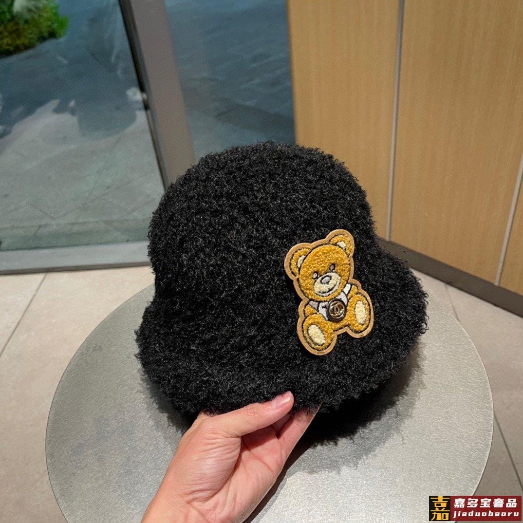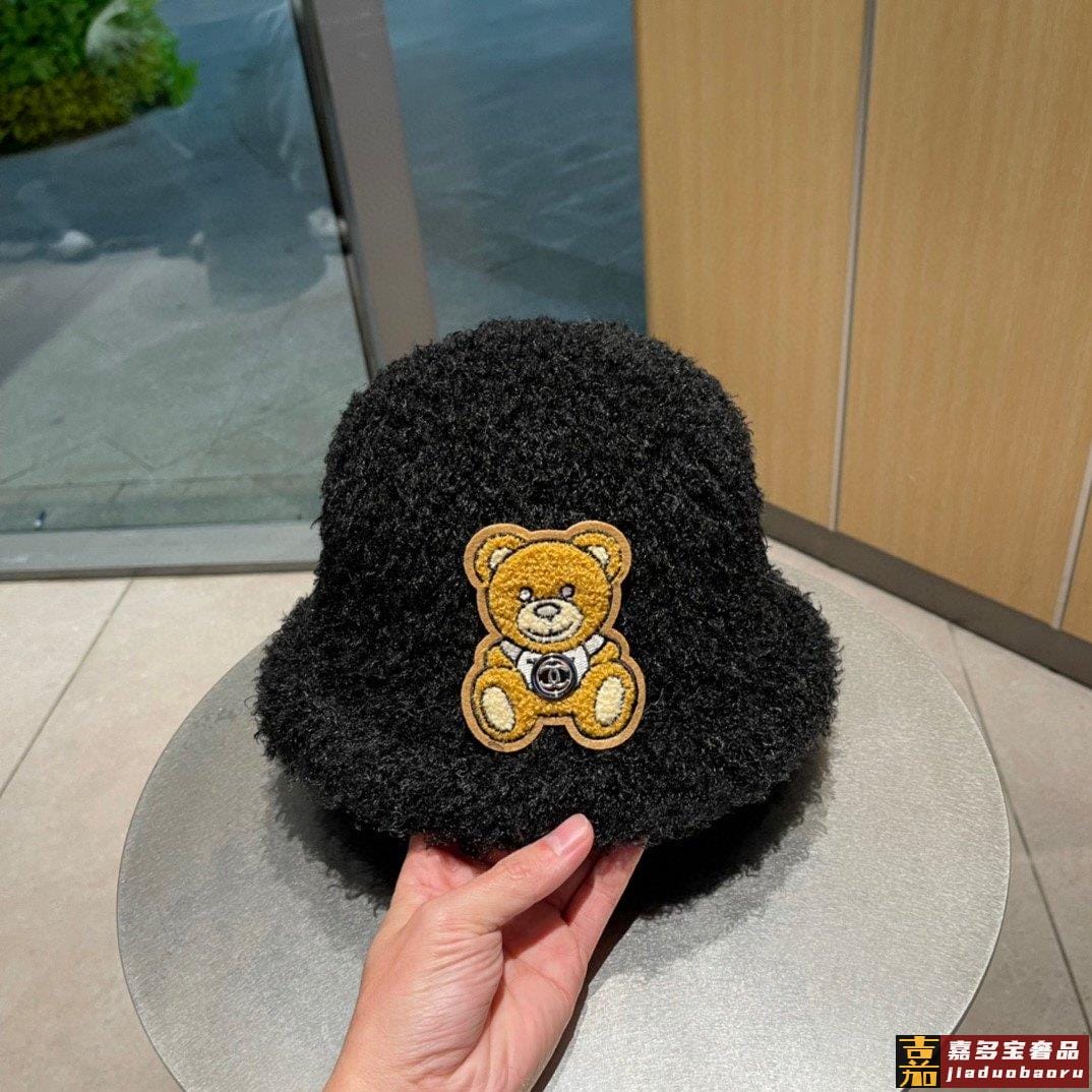 香奈儿秋冬新款羊羔毛渔夫帽韩版潮牌百搭显脸可爱的小熊渔夫帽小