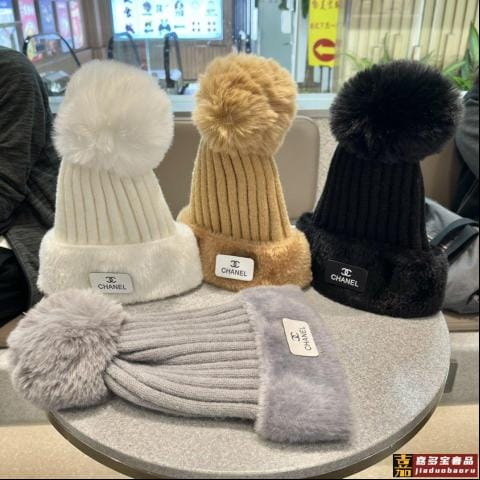 香奈儿秋冬新款针织皮标字母兔毛毛线帽简约时尚经典款潮人标配针
