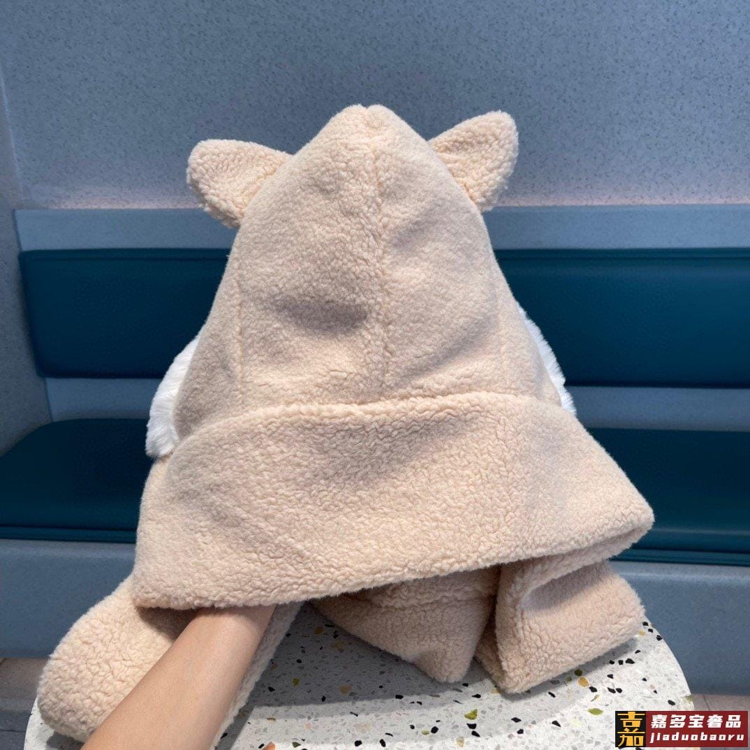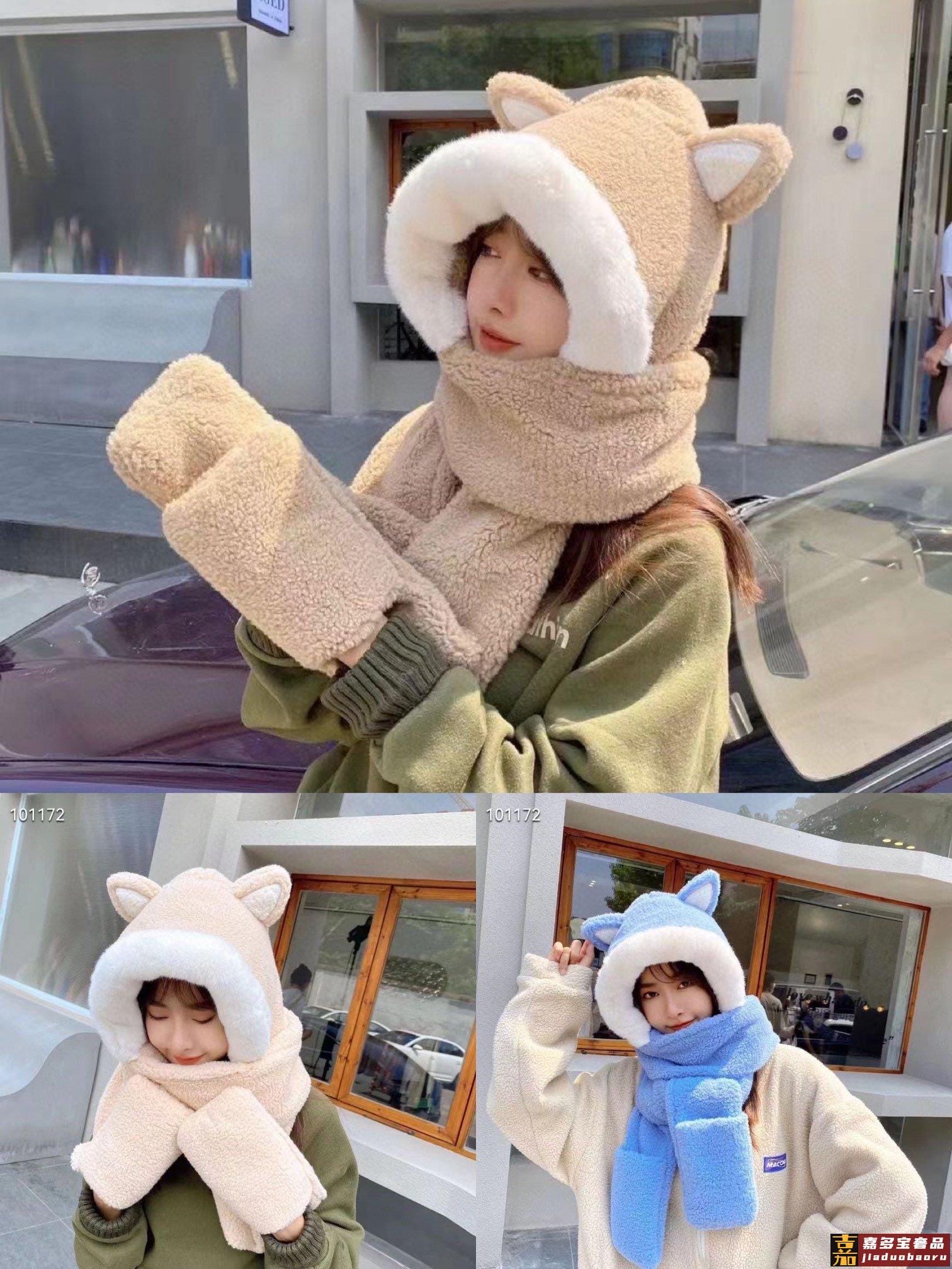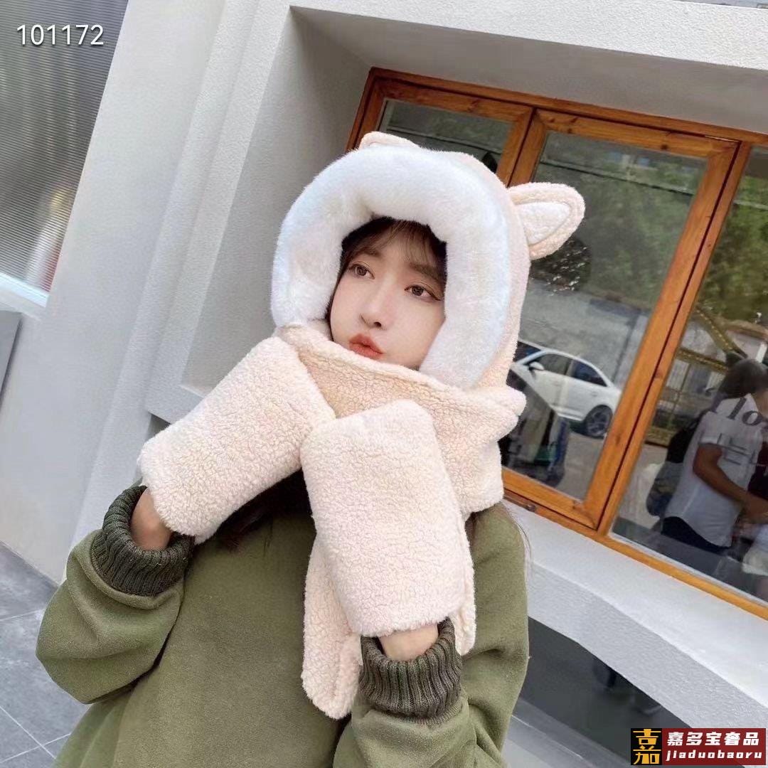 赛琳三件套羊羔毛秋冬加绒加厚保暖女可爱小熊帽子围巾手套
