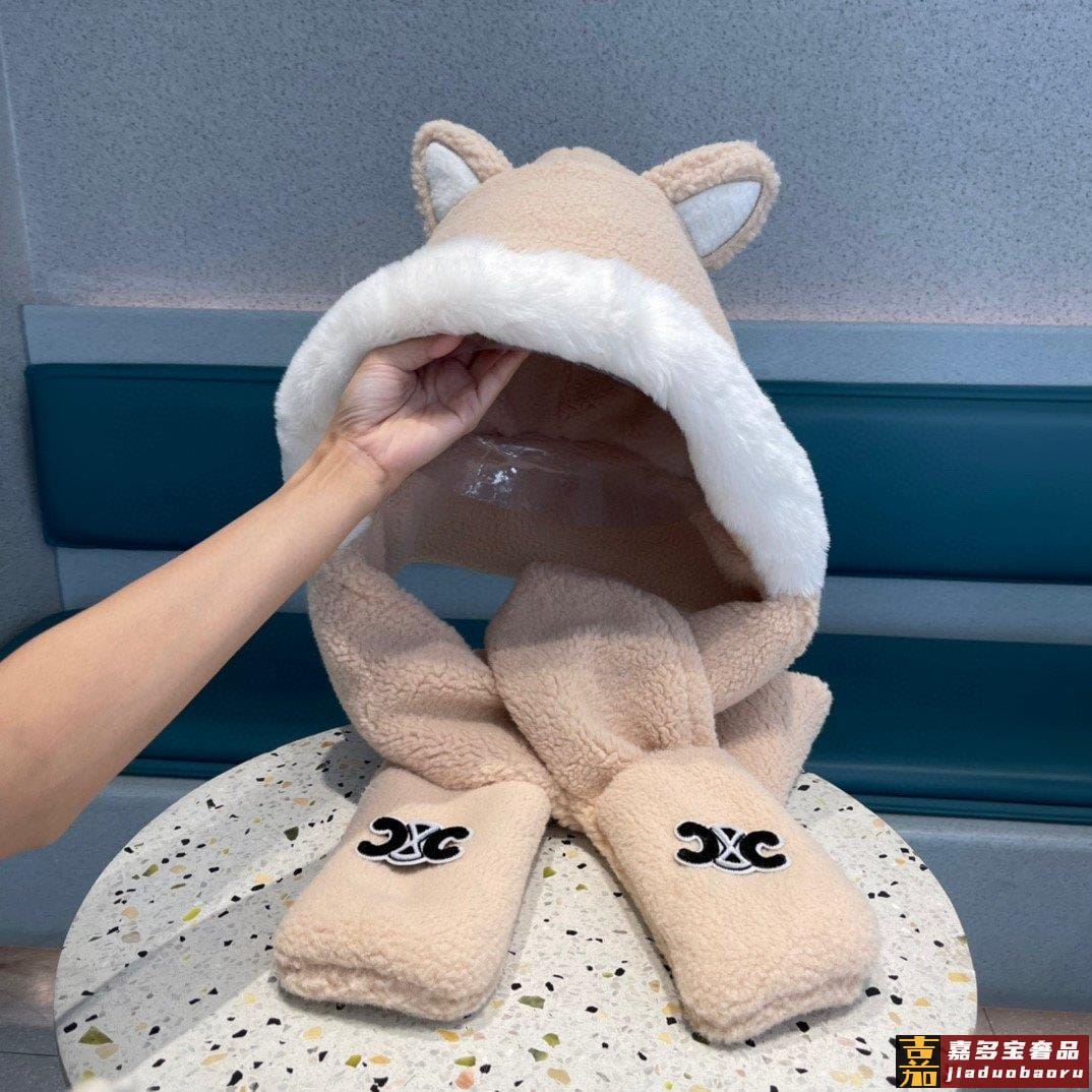 香奈儿套装淑女装原单帽子围巾套装狐狸毛球帽子兔绒羊绒材质保暖