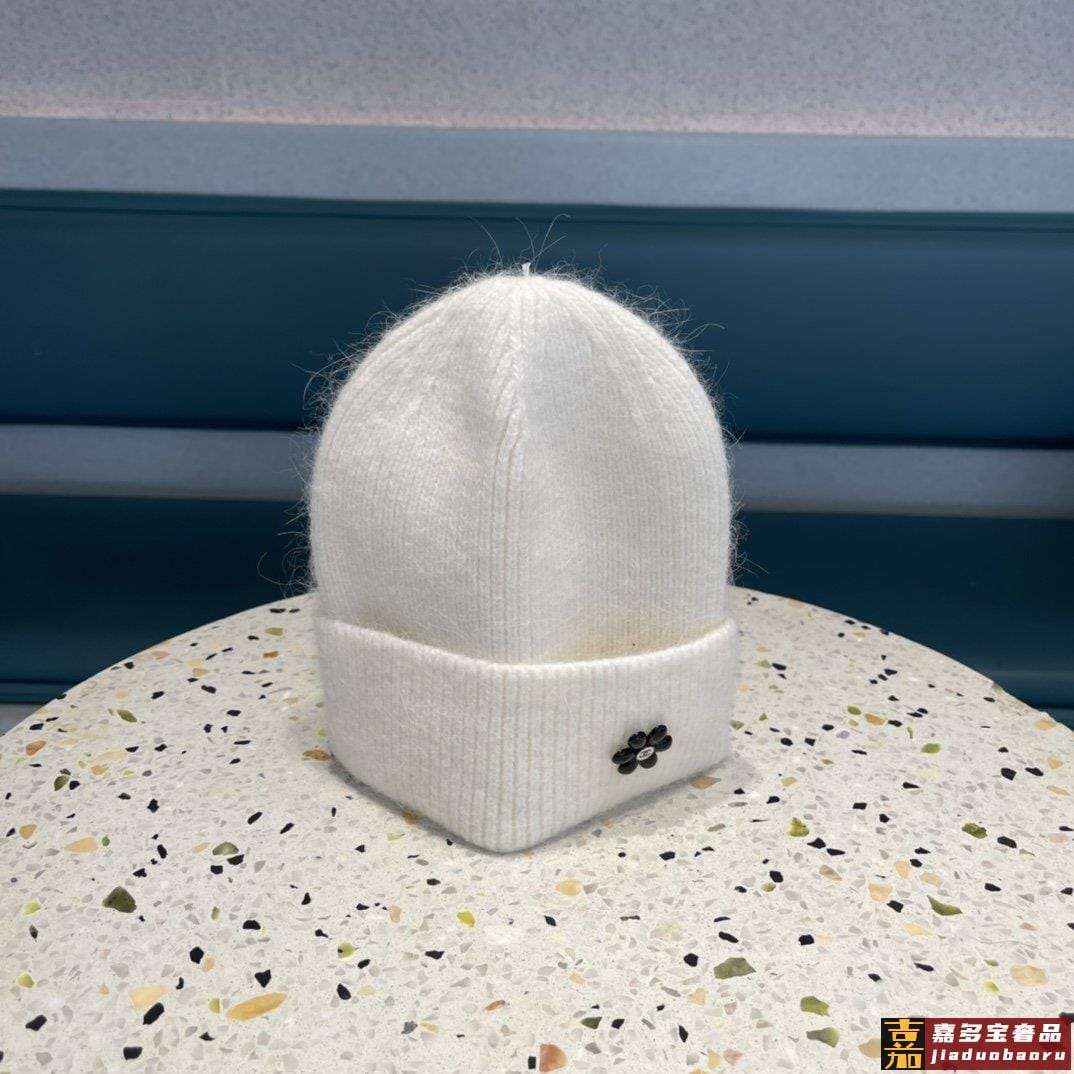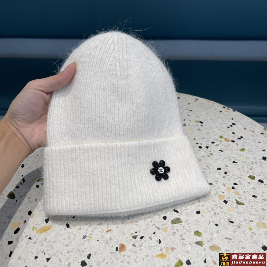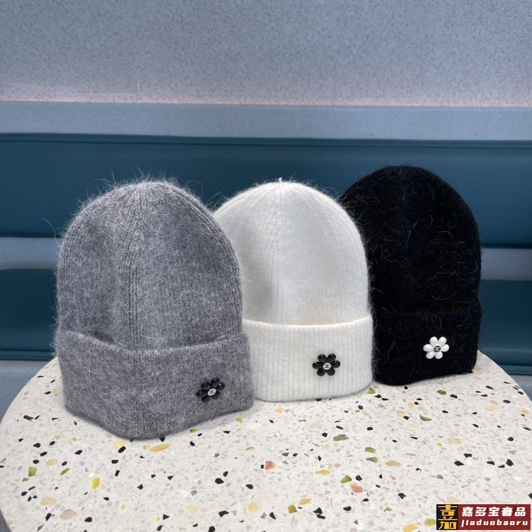 香奈儿秋冬新款针织皮标字母兔毛毛线帽简约时尚经典款潮人标配针