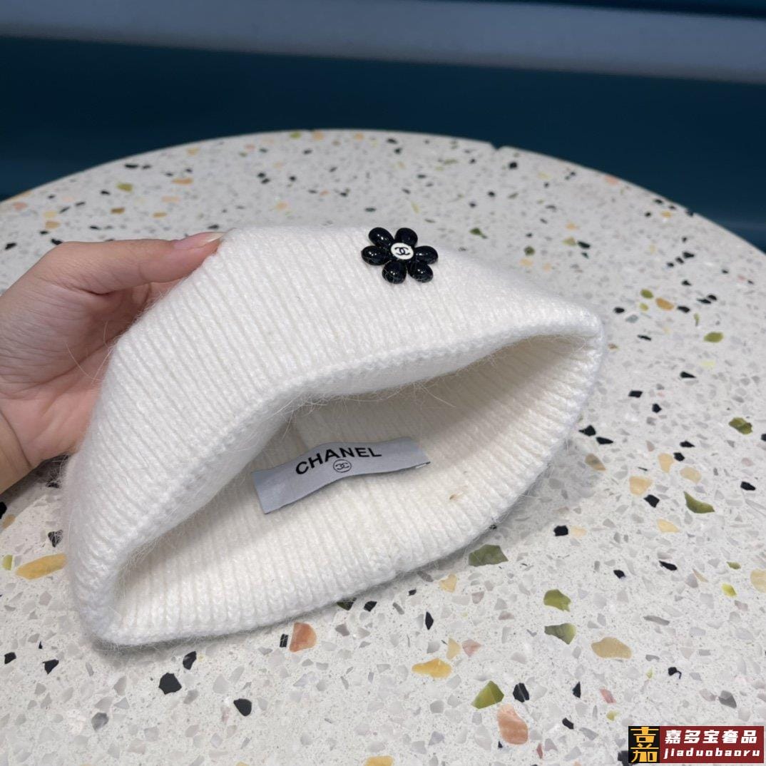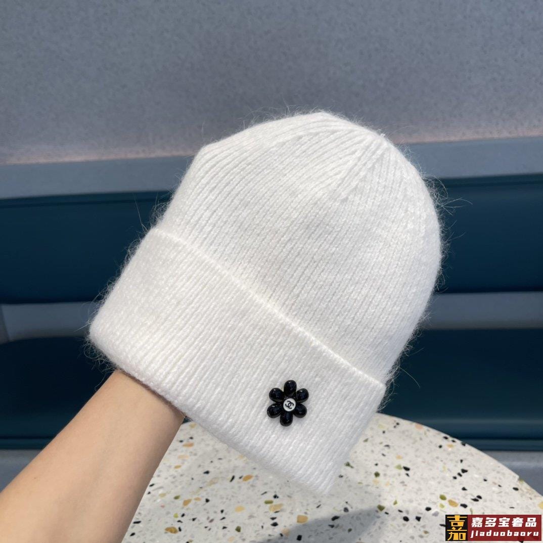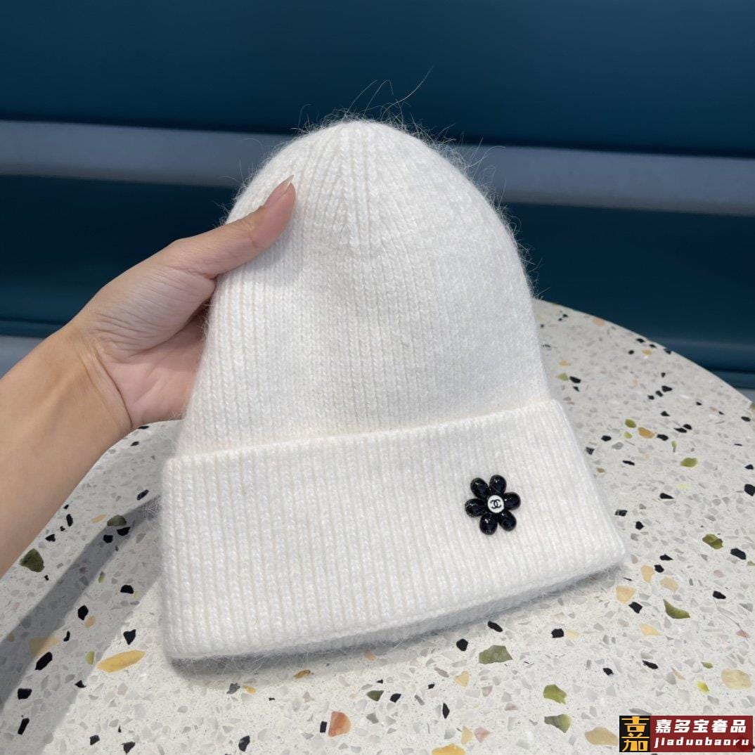 香奈儿秋冬新款针织皮标字母兔毛毛线帽简约时尚经典款潮人标配针