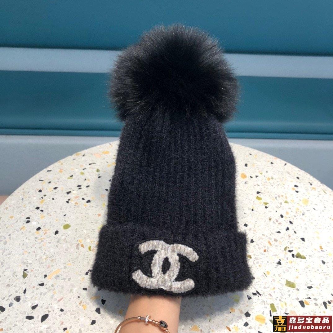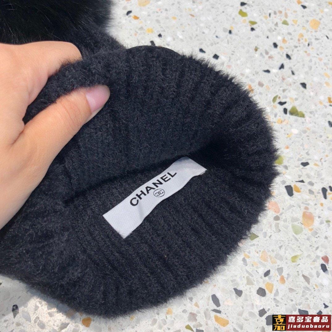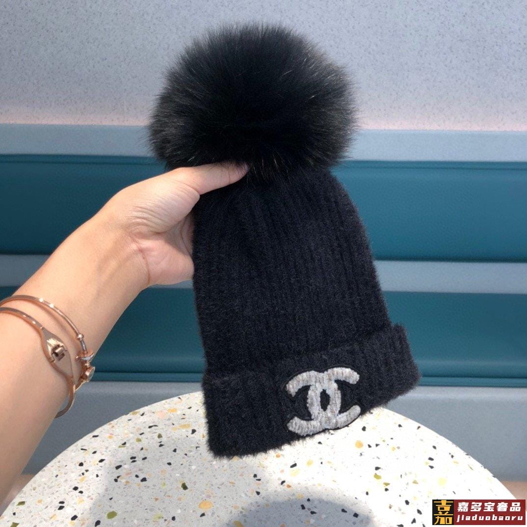 香奈儿女秋冬狐狸毛球毛线帽子女冬天潮百搭保暖针织帽