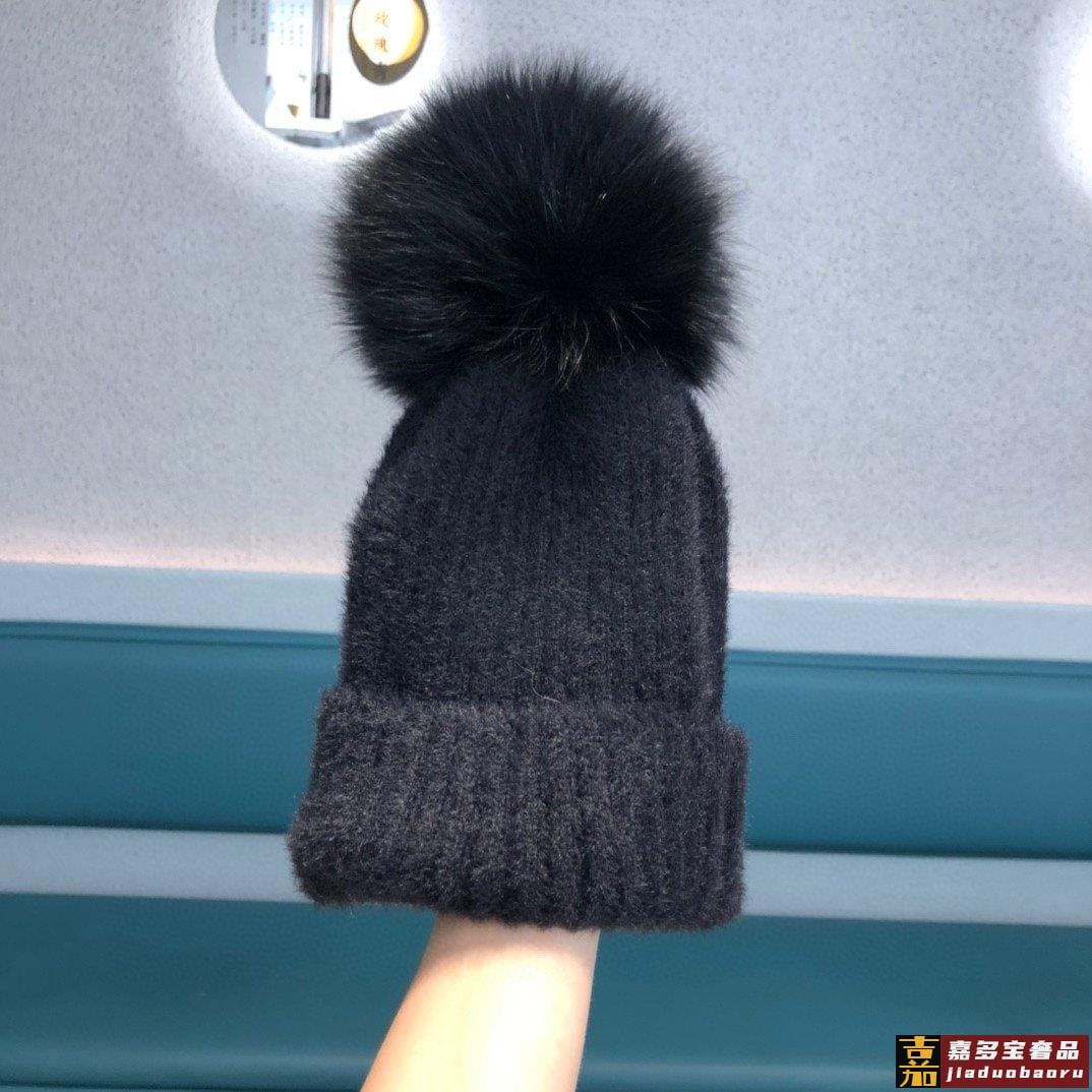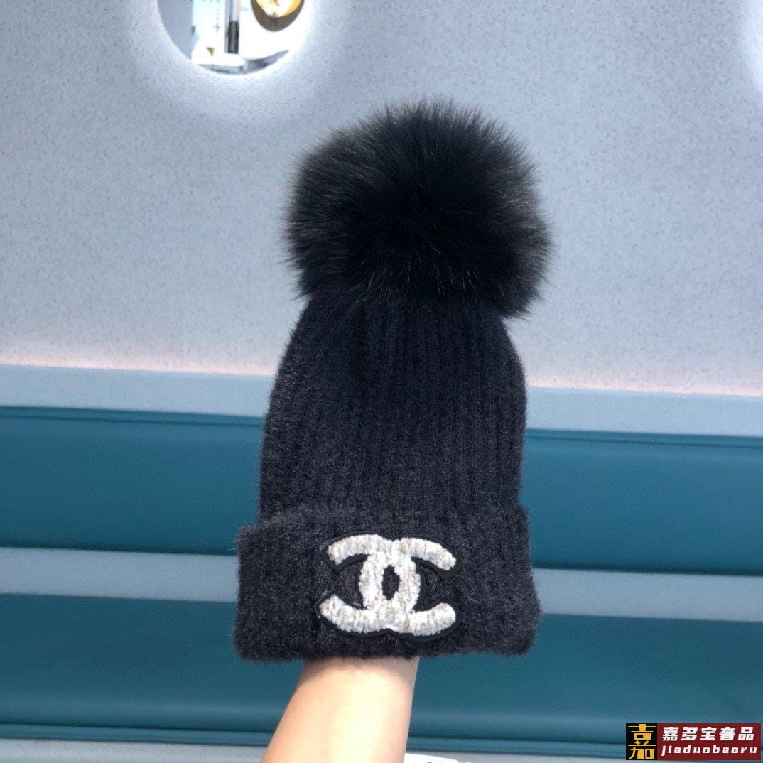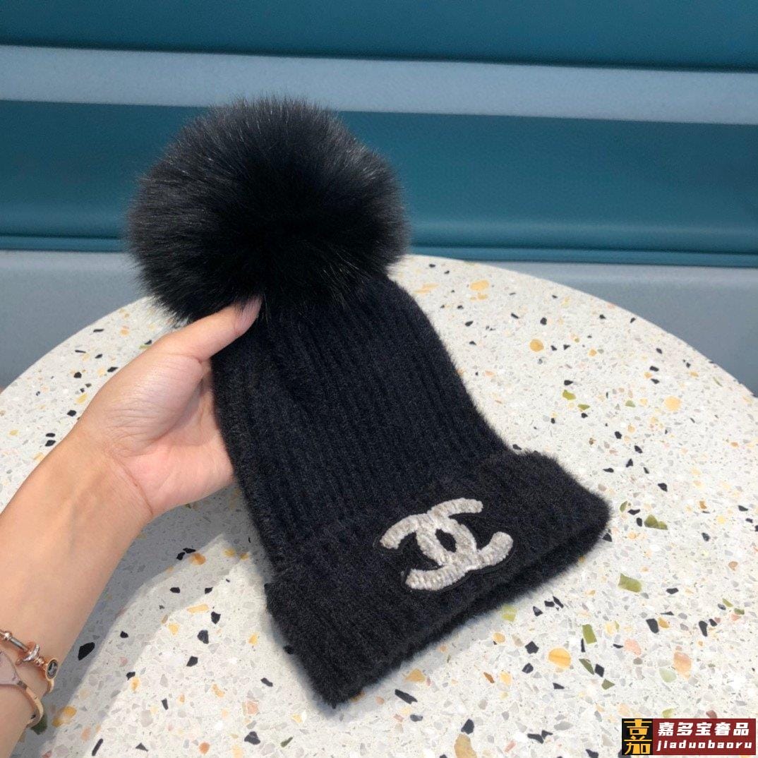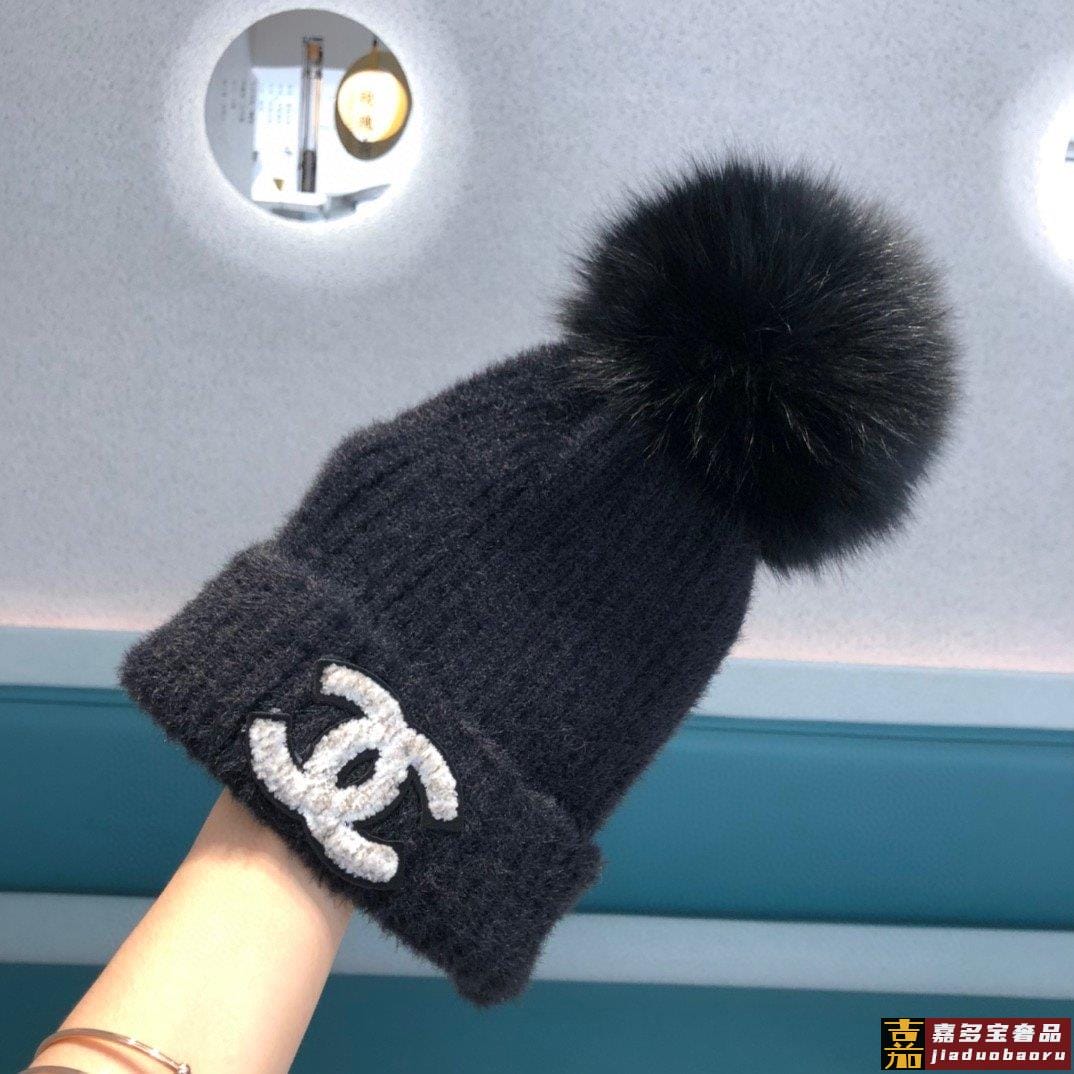 香奈儿女秋冬狐狸毛球毛线帽子女冬天潮百搭保暖针织帽