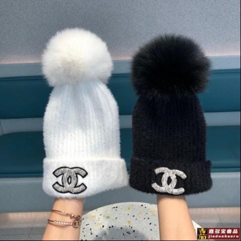 香奈儿女秋冬狐狸毛球毛线帽子女冬天潮百搭保暖针织帽