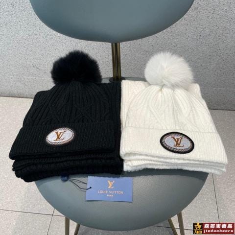 路易威登套装帽子围巾套装配狐狸毛球兔绒羊绒非常柔软舒适保暖又