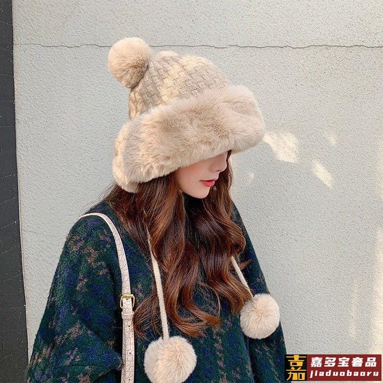 赛琳帽子女颗粒羊羔绒渔夫帽秋冬韩版百搭水桶网红毛绒绒显脸小众