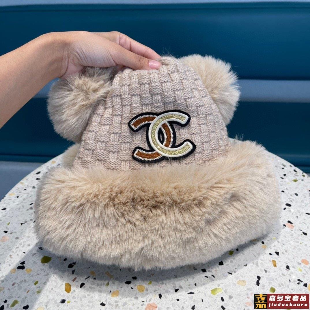 香奈儿羊羔毛男女通用地主帽官方同款针织帽檐
