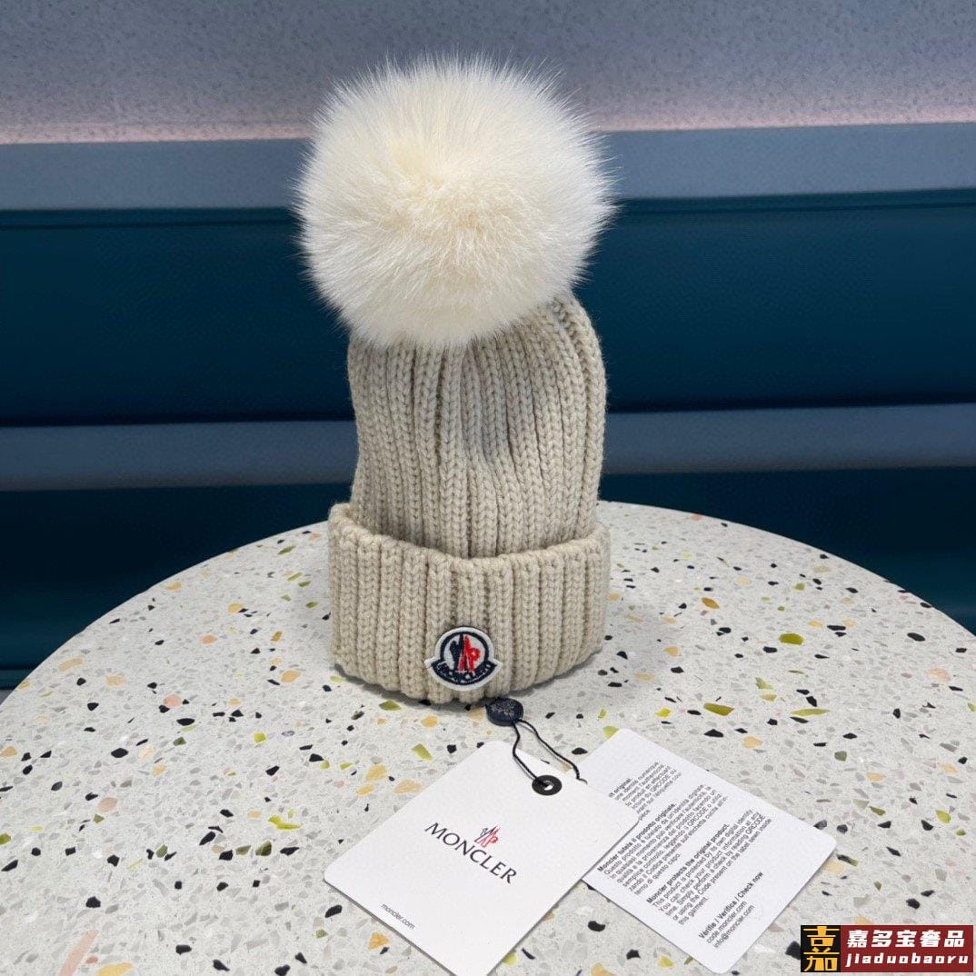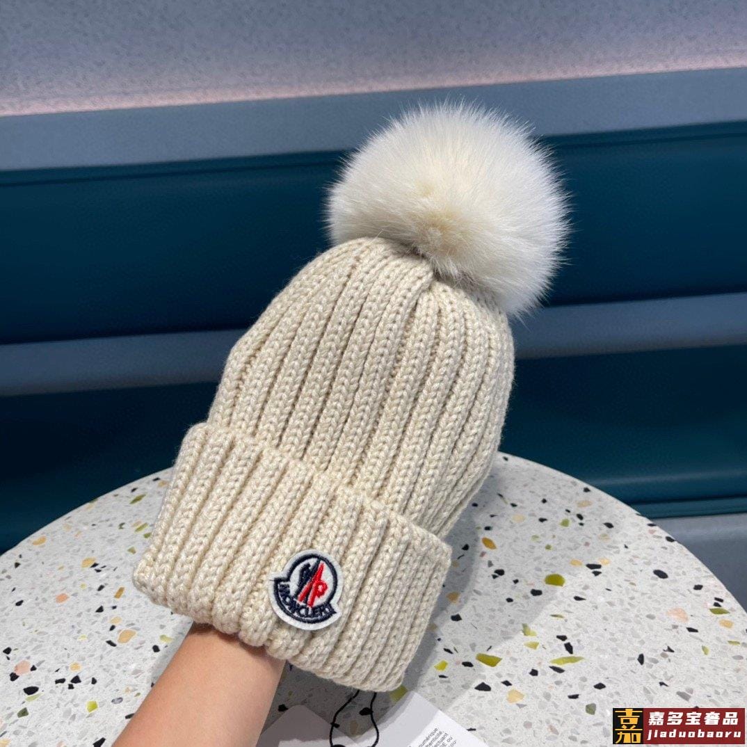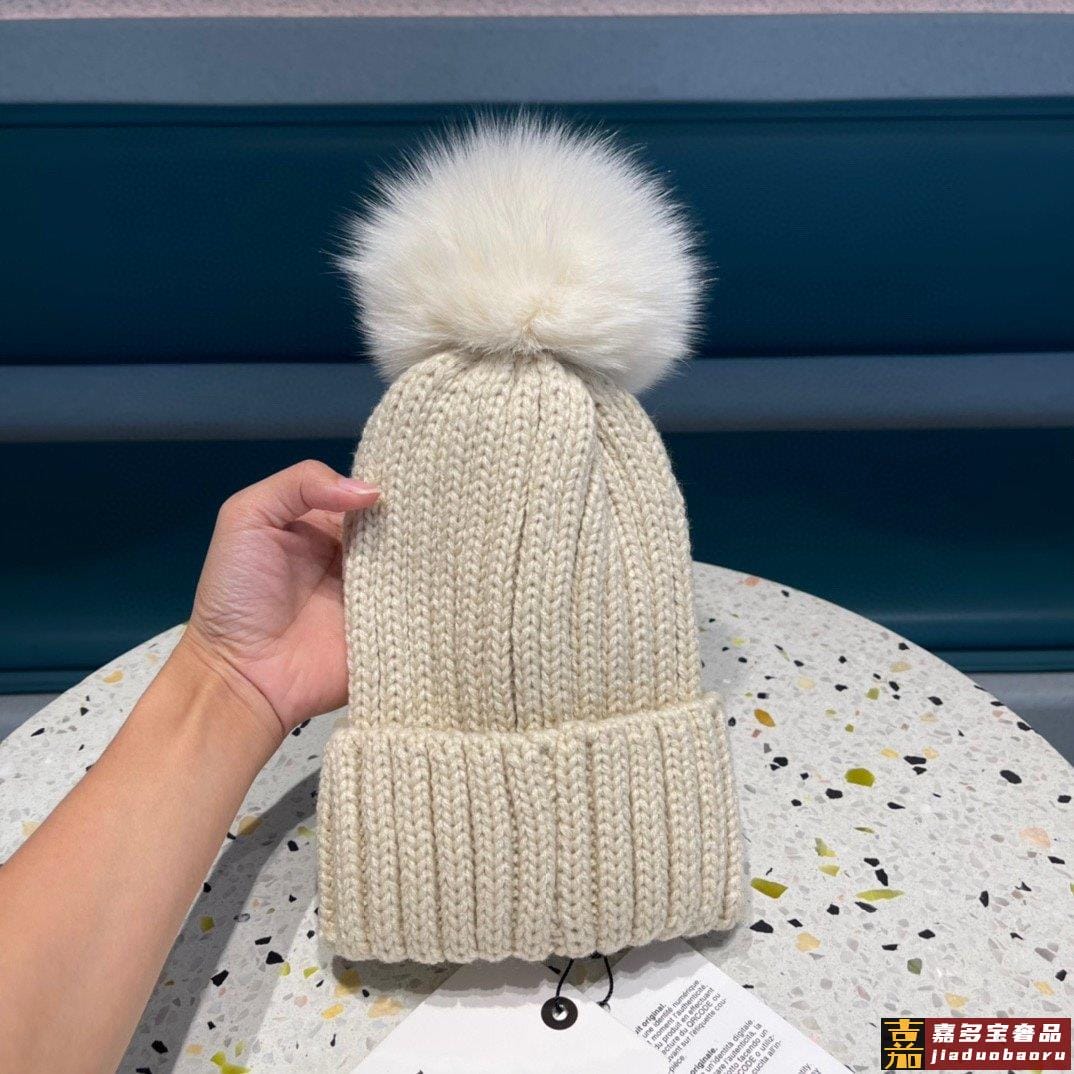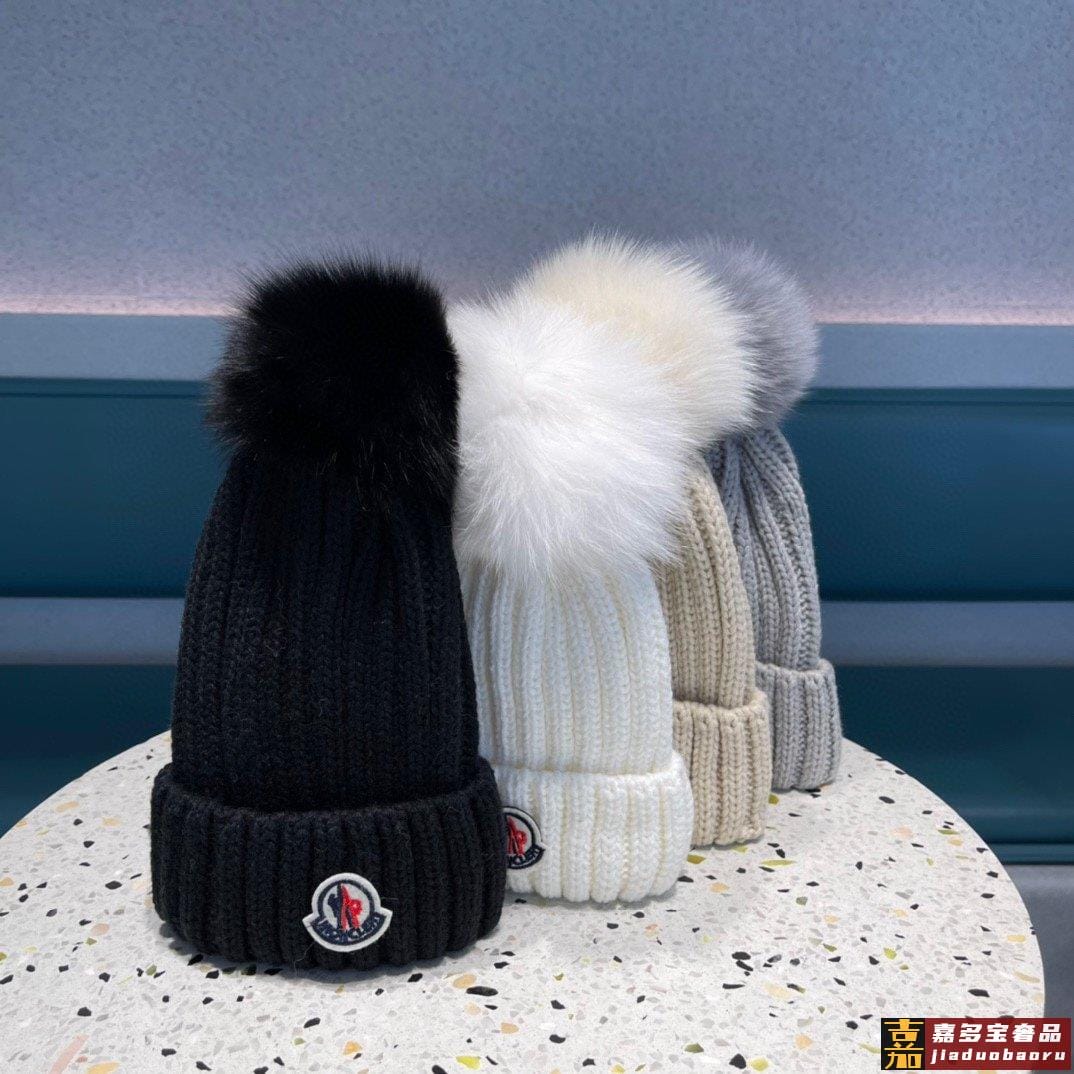 蒙口百分百羊毛针织毛线帽狐狸毛球可拆卸可隨意搭配好品质高端大