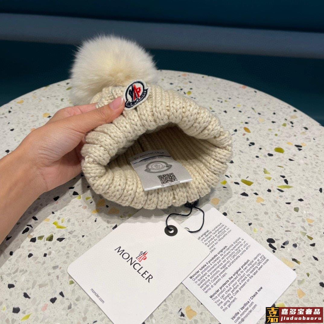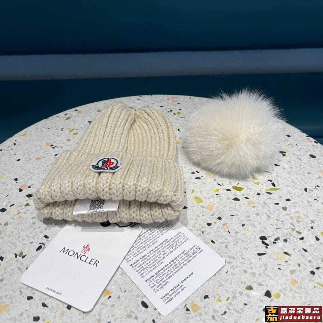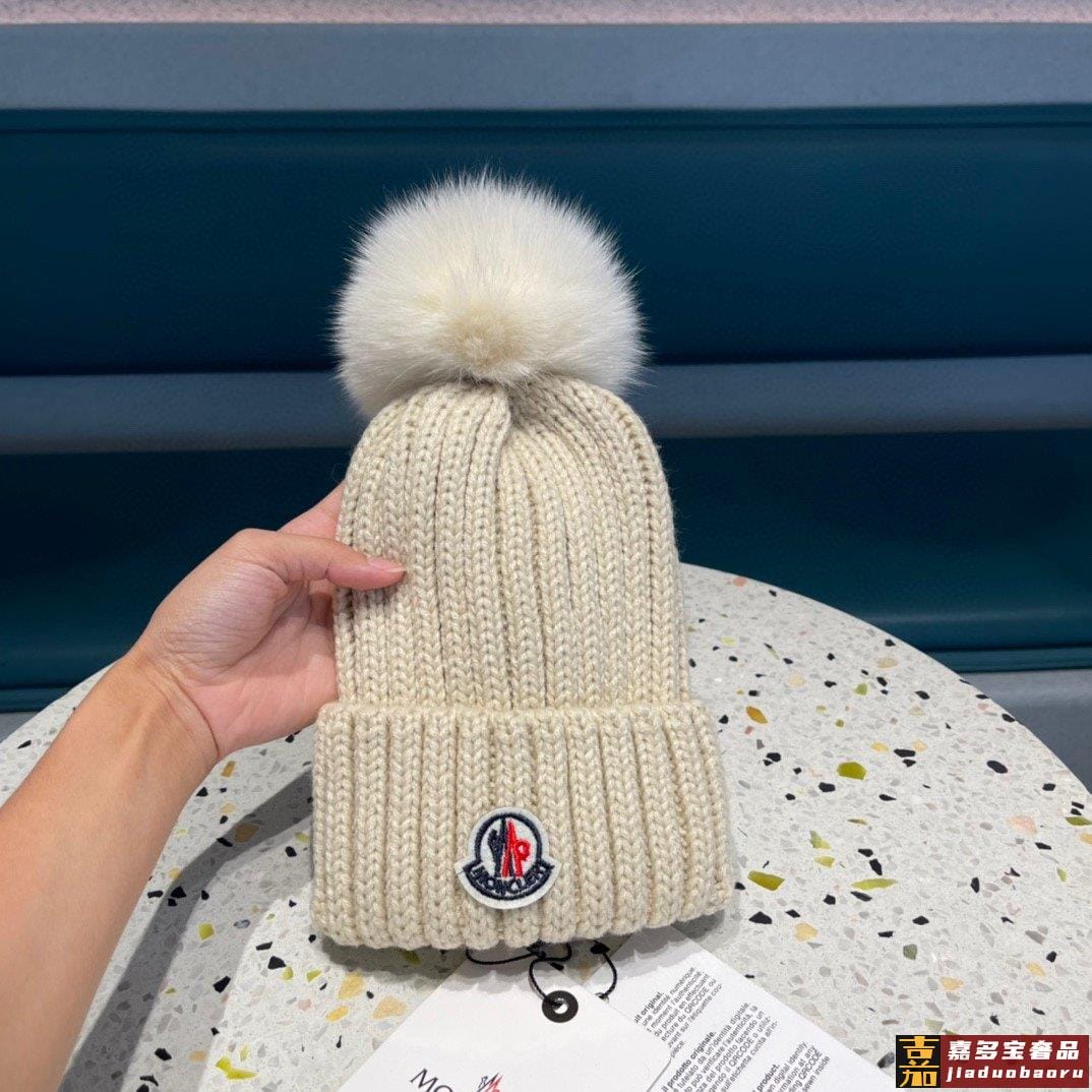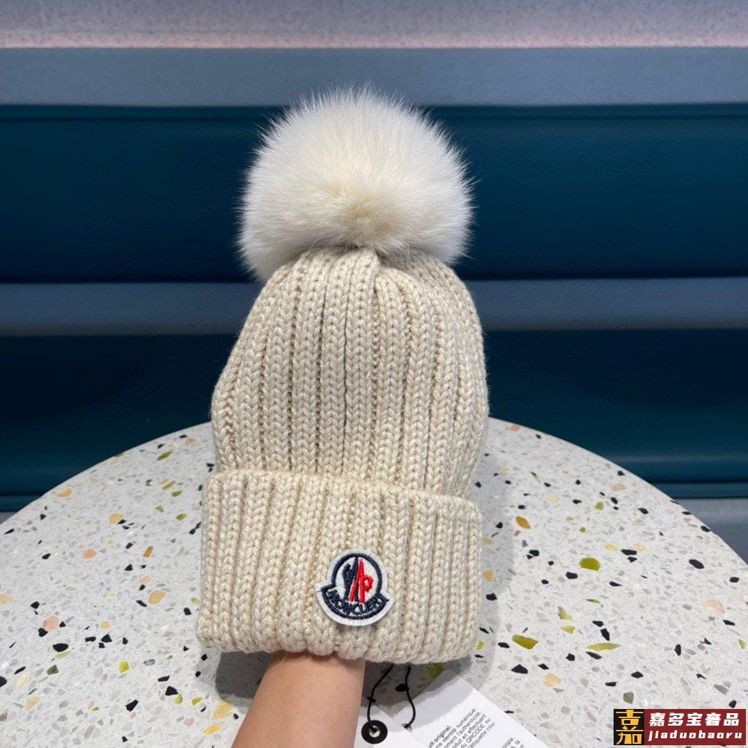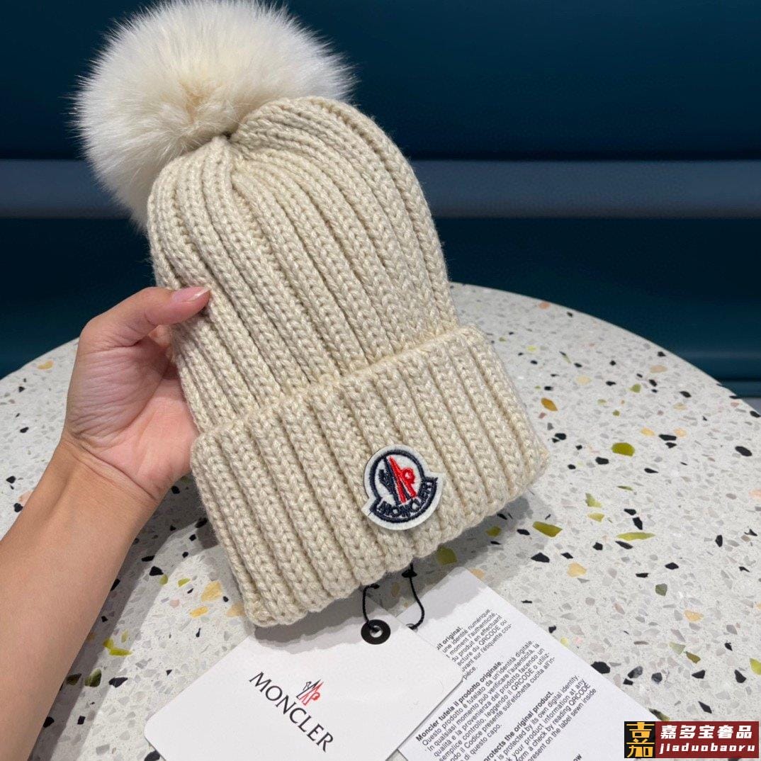 蒙口百分百羊毛针织毛线帽狐狸毛球可拆卸可隨意搭配好品质高端大