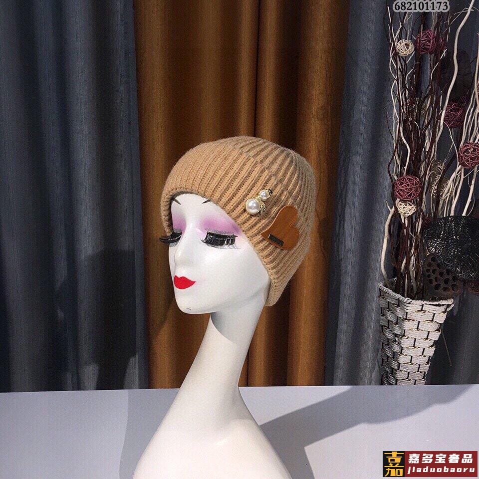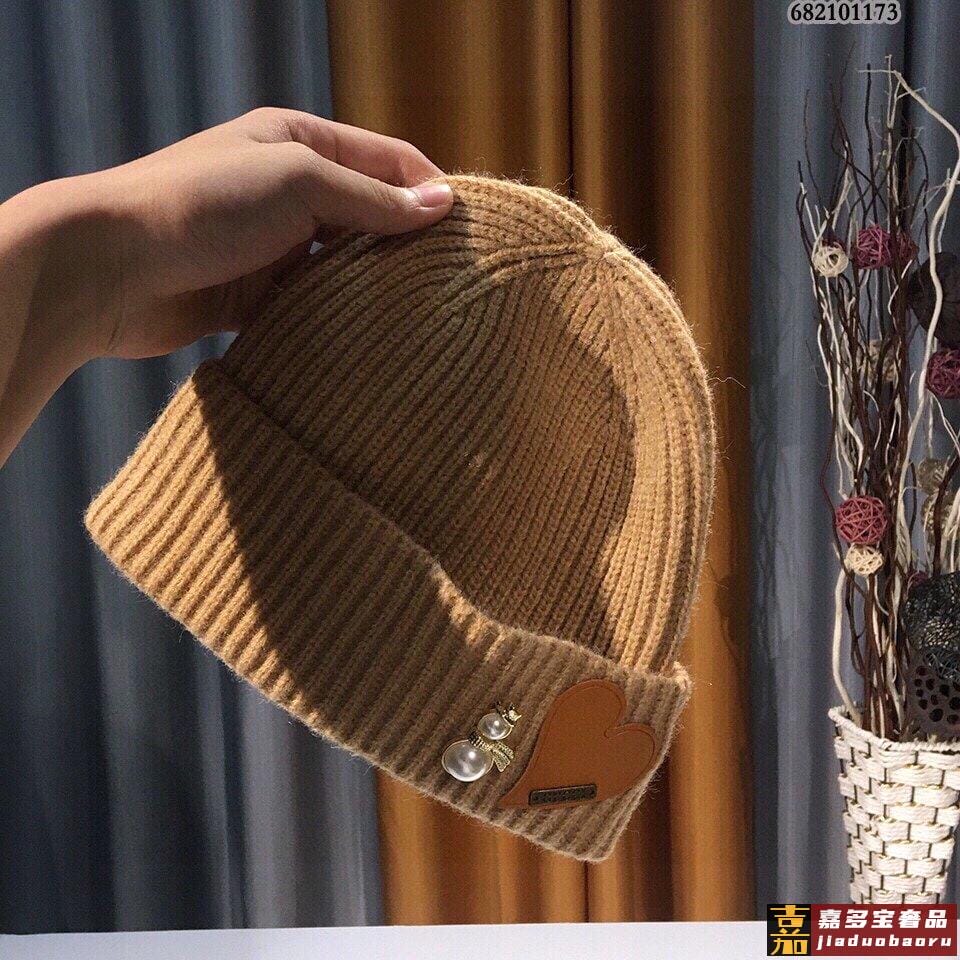 秋冬新款针织刺绣字母标志毛线帽简约时尚款潮人标配针织弹性极佳不限头围