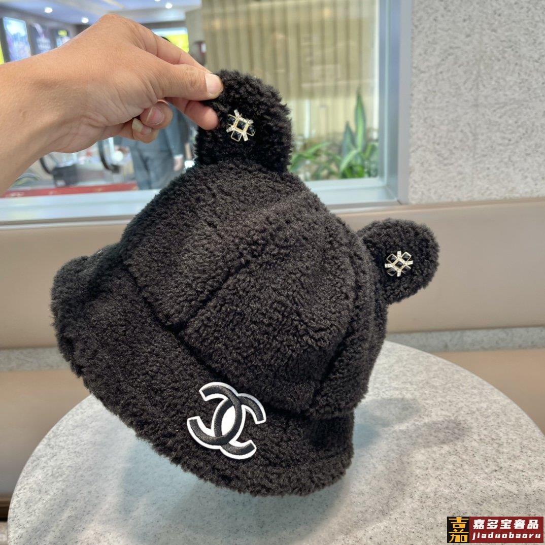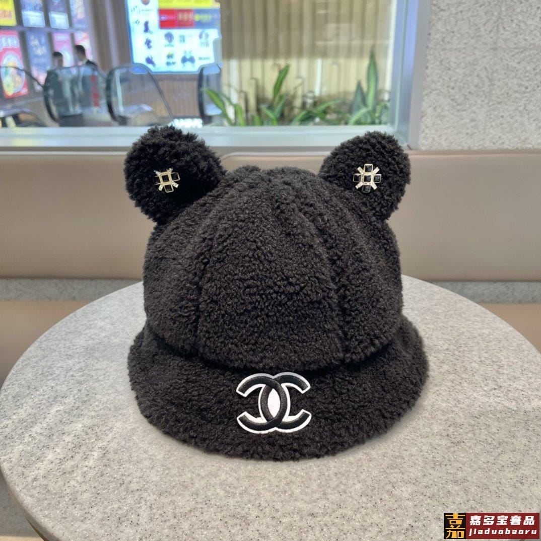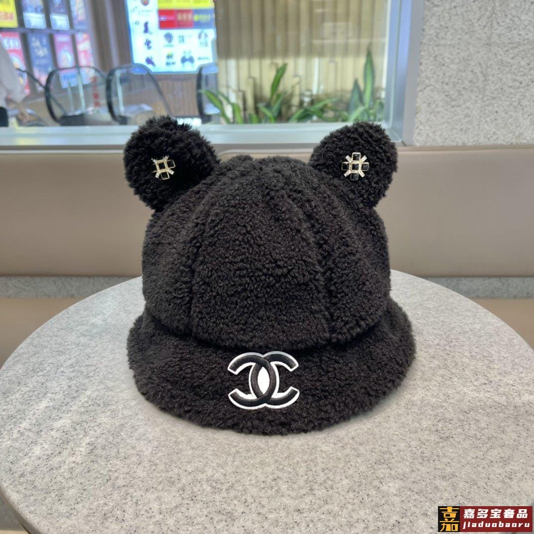 香奈儿秋冬新款羊绒毛网红同款韩国网红冬小熊耳朵渔夫帽子女卡通
