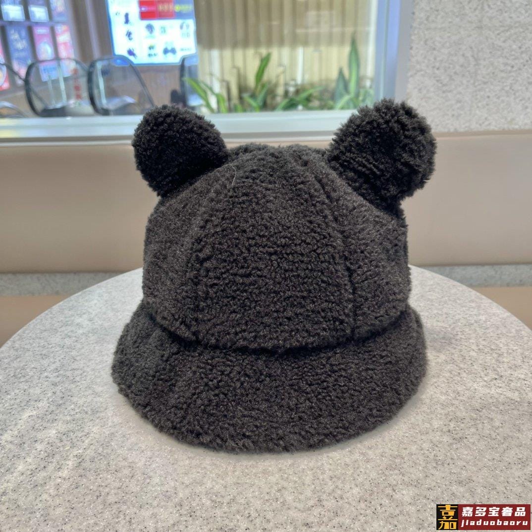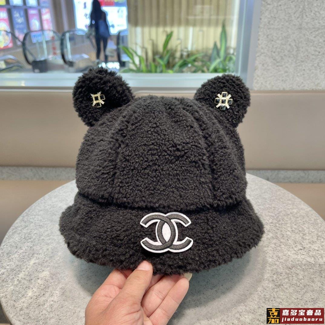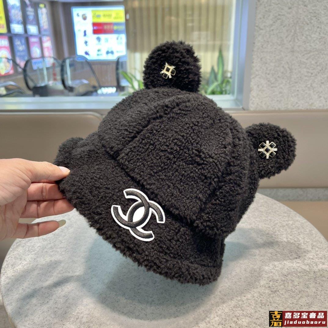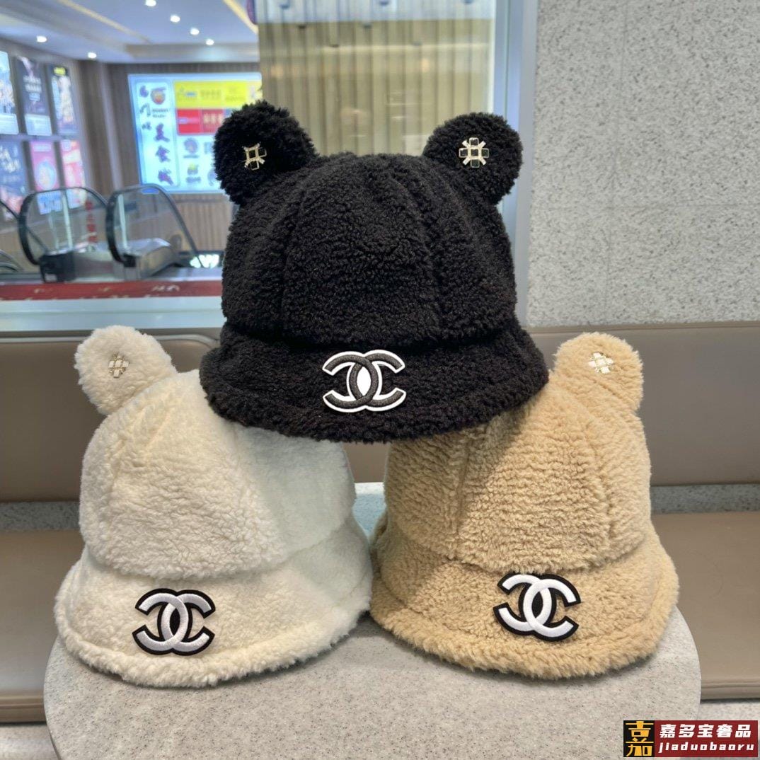 香奈儿秋冬新款羊绒毛网红同款韩国网红冬小熊耳朵渔夫帽子女卡通