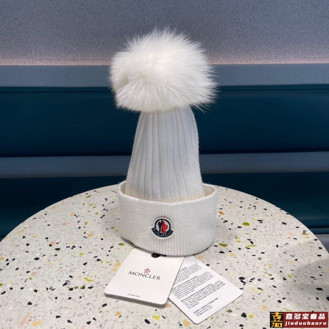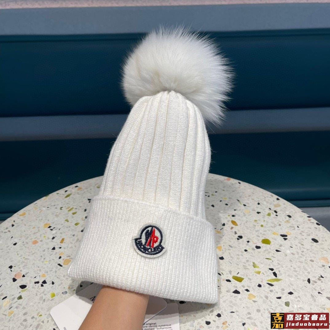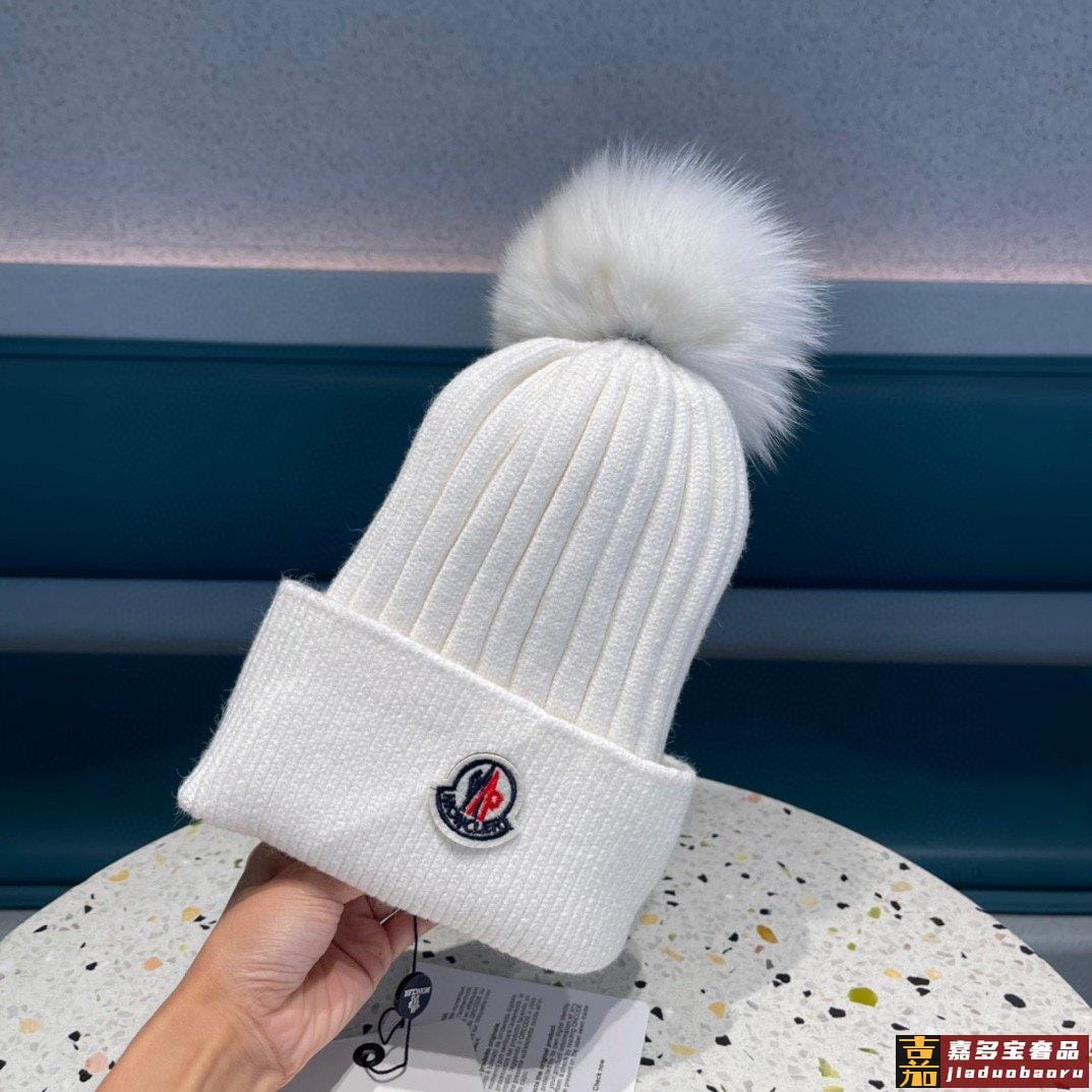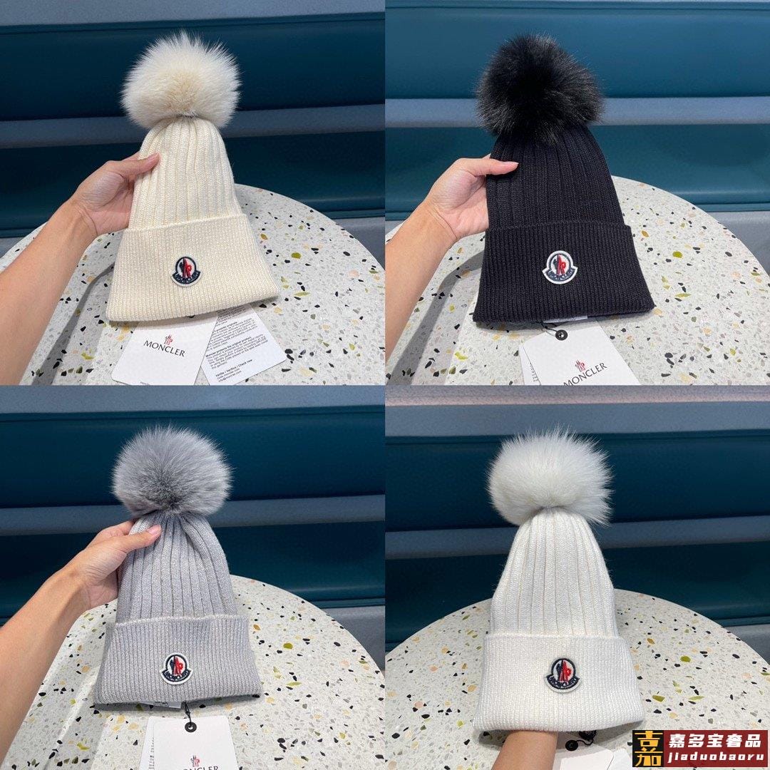 蒙口秋冬最新款情侣款针织毛线帽超大个真毛毛球专柜在售款特别渠