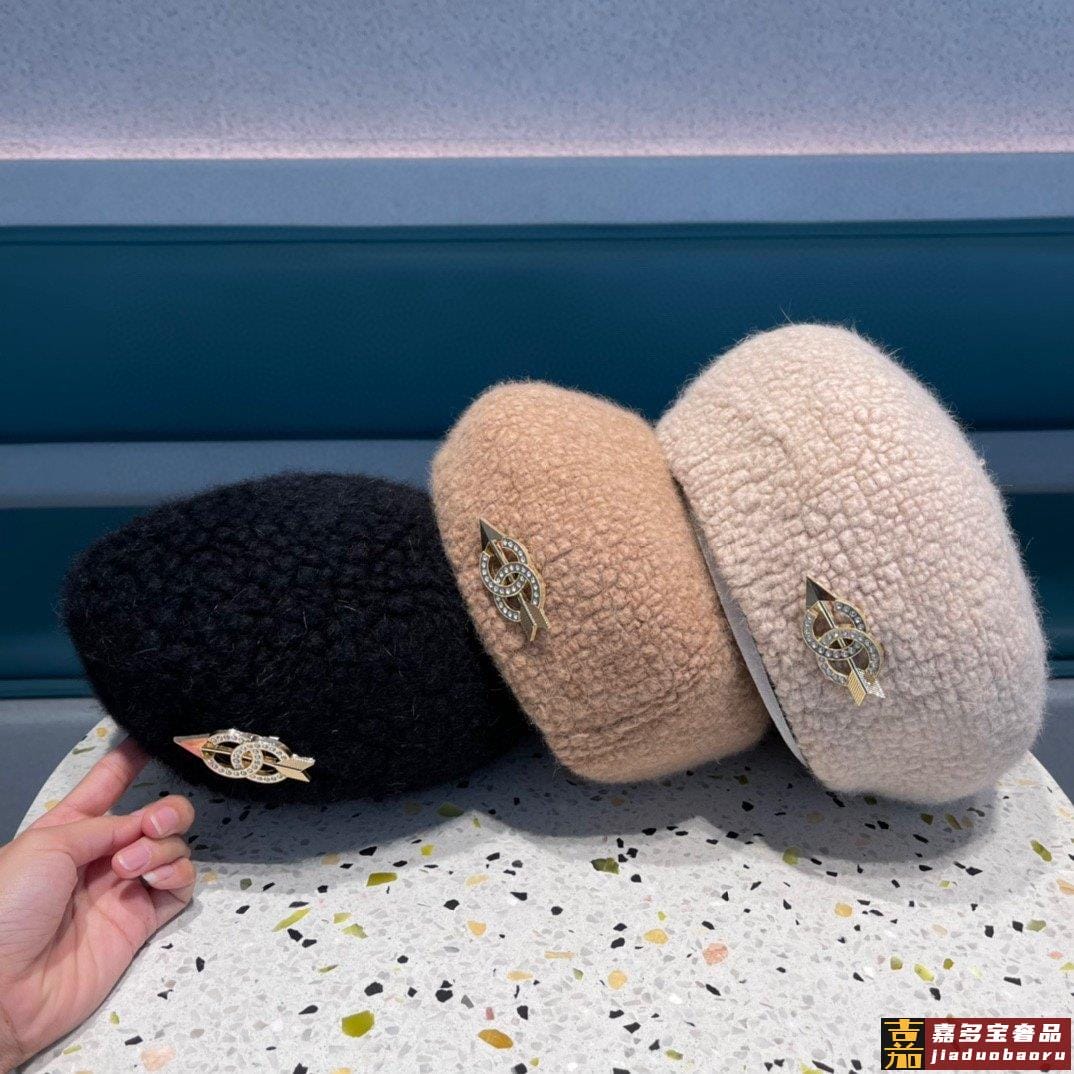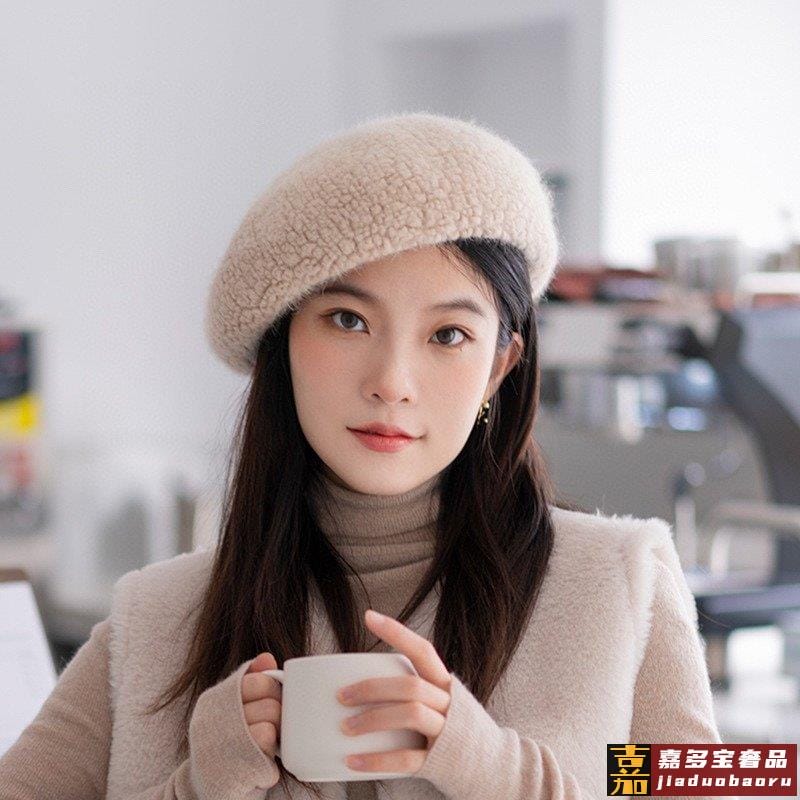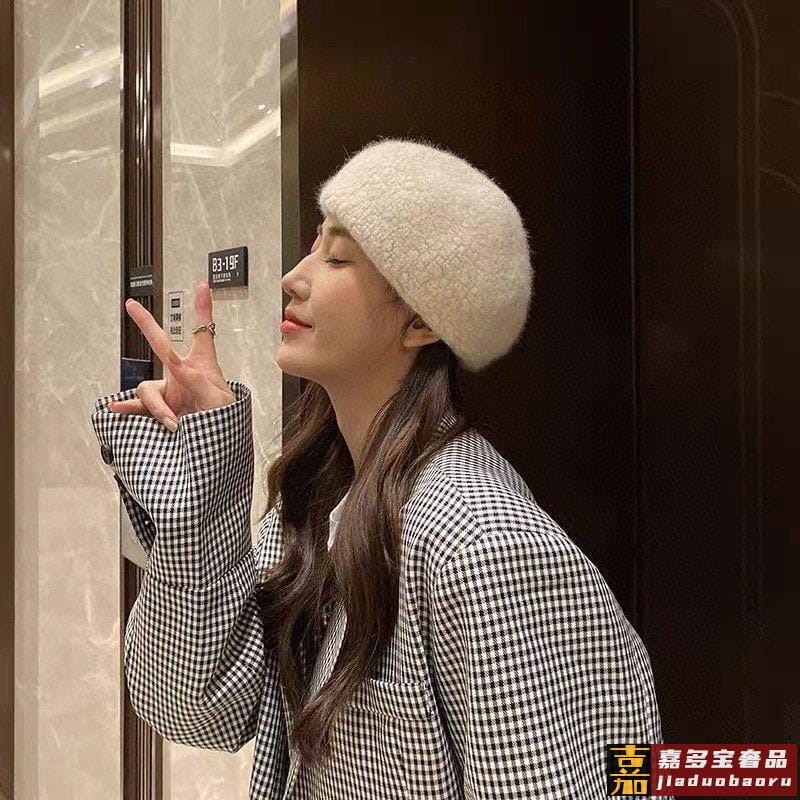 香奈儿日系复古羊毛混纺贝雷帽子女秋冬保暖豆豆画家帽纯色百搭空