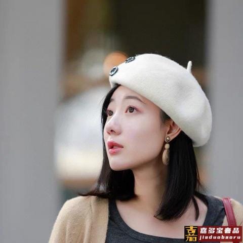香奈儿日系复古羊毛混纺贝雷帽子女秋冬保暖豆豆画家帽纯色百搭空