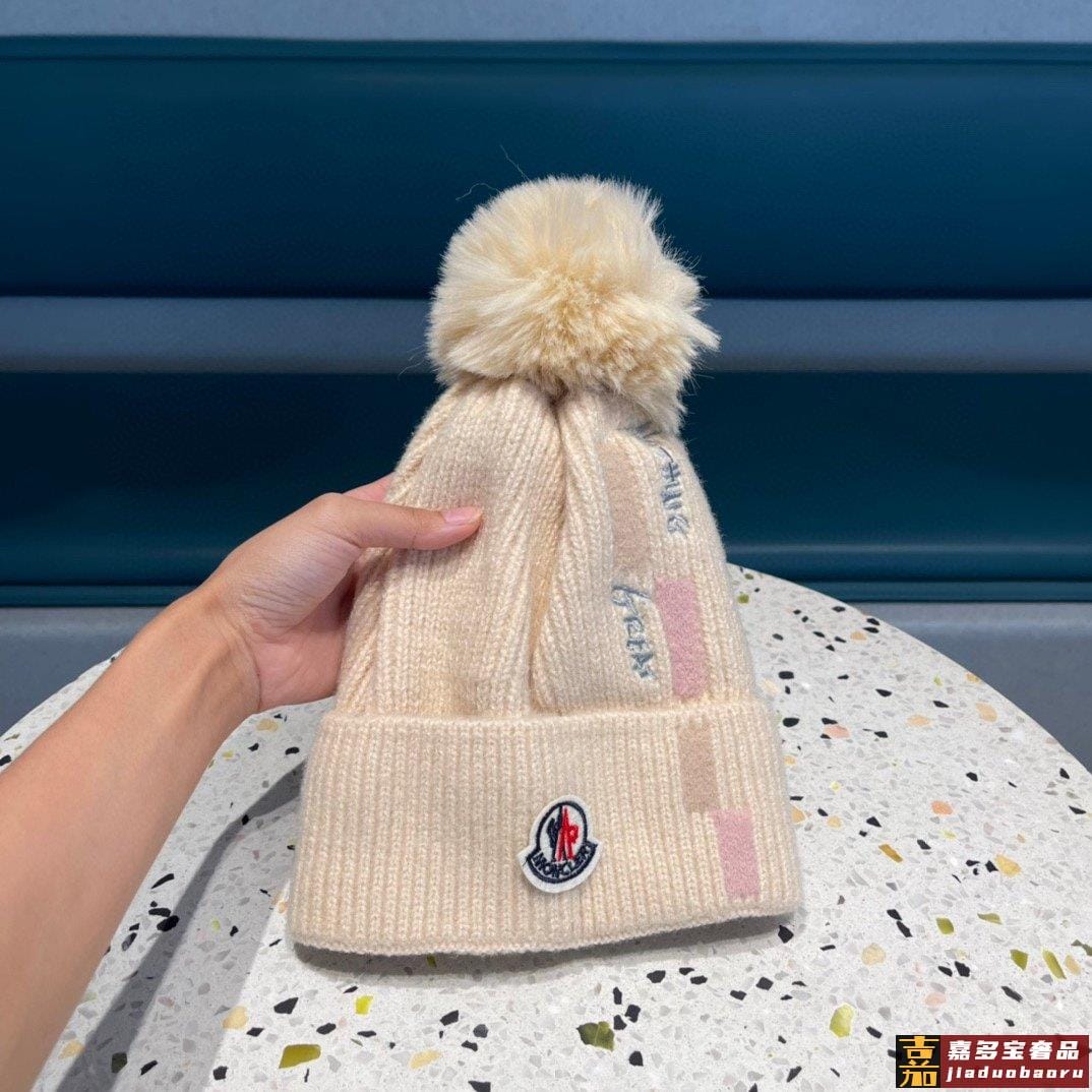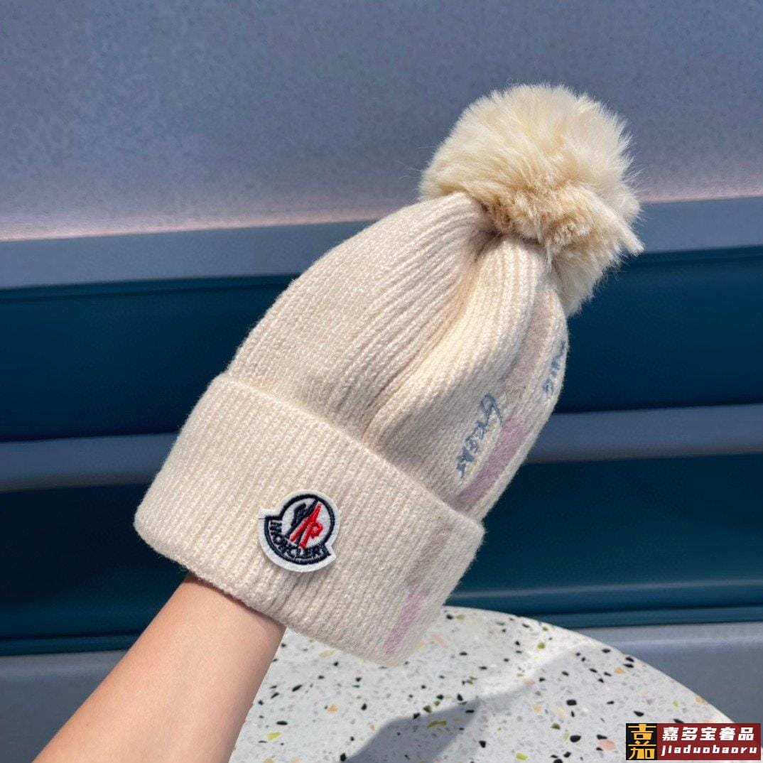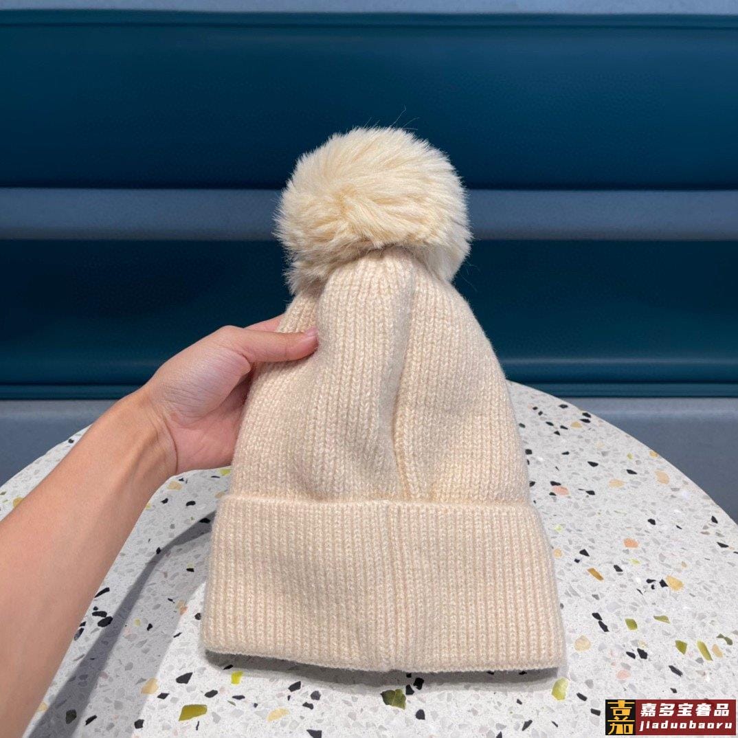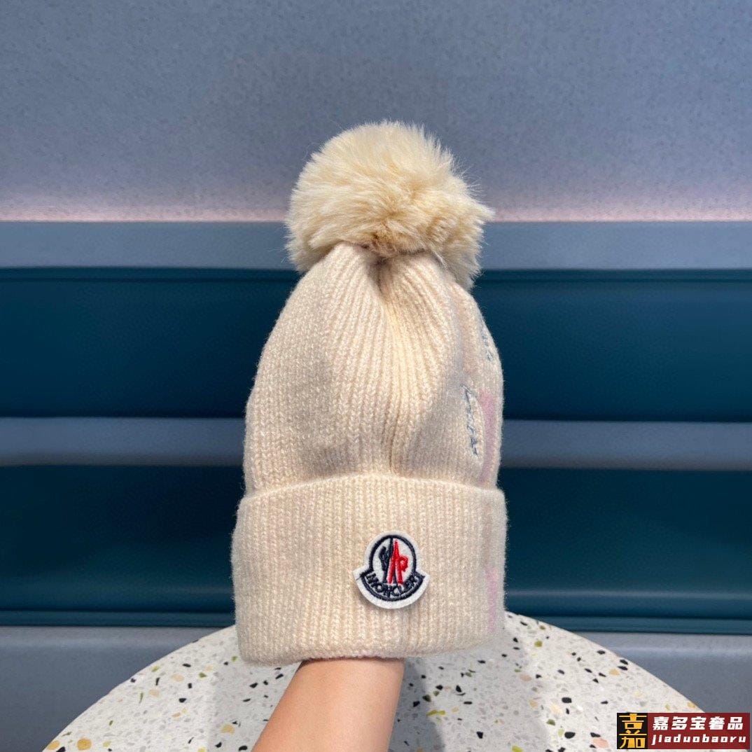 蒙口秋冬最新款情侣款针织毛线帽超大个真毛毛球专柜在售款特别渠