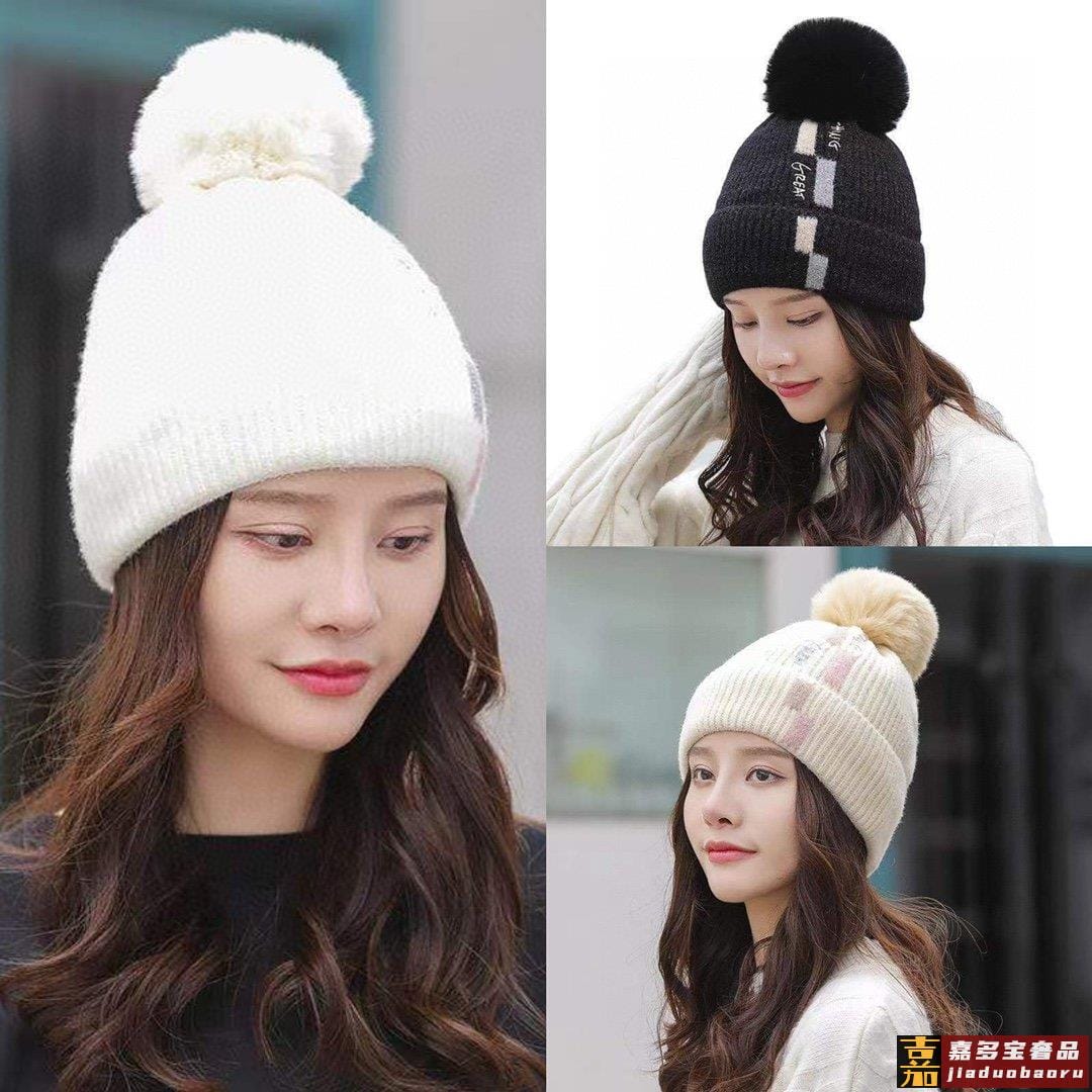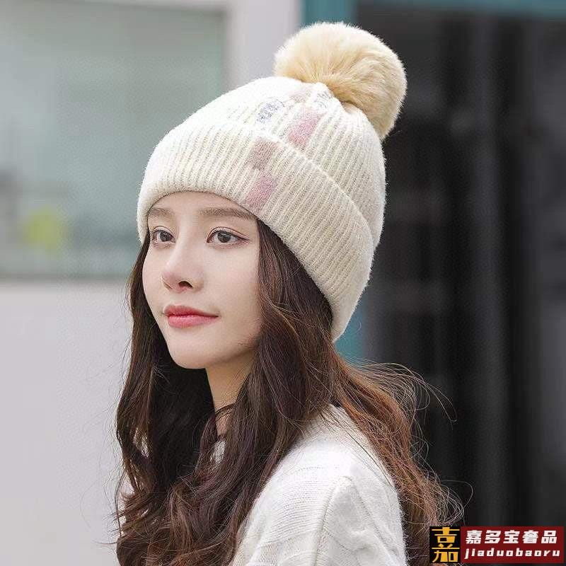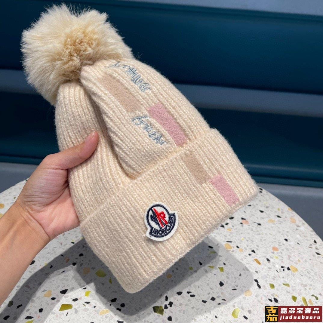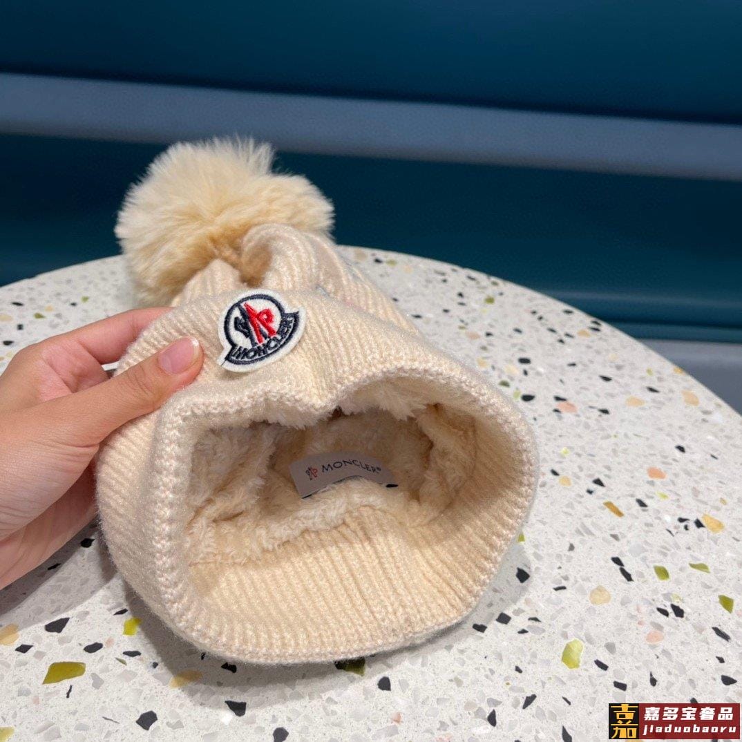 蒙口秋冬最新款情侣款针织毛线帽超大个真毛毛球专柜在售款特别渠
