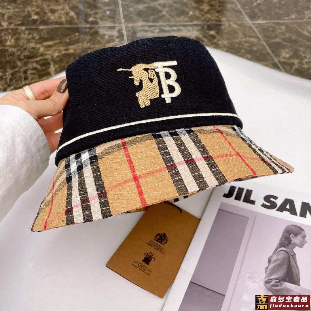 巴宝莉专柜新款刺绣渔夫帽大牌同步超好搭配出货