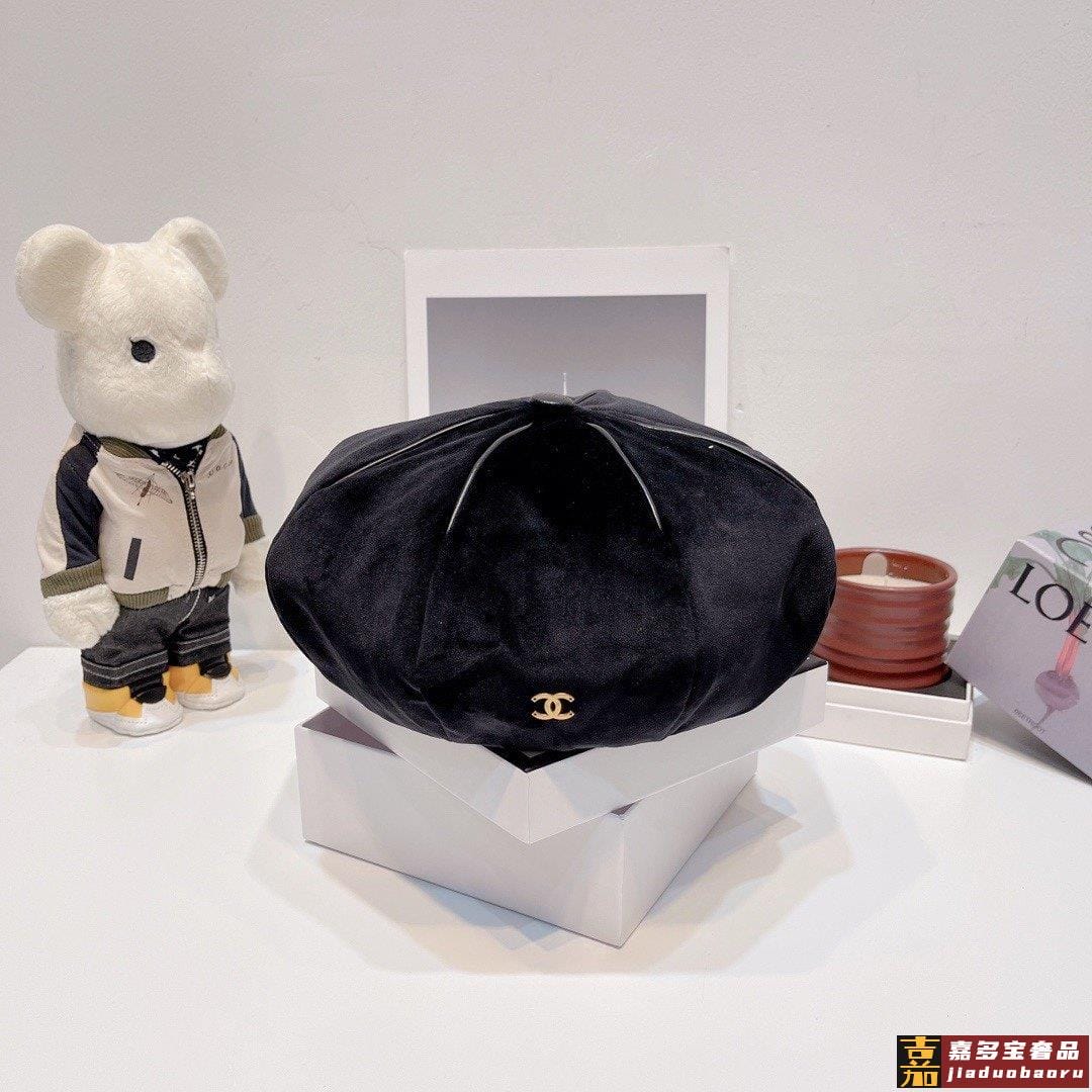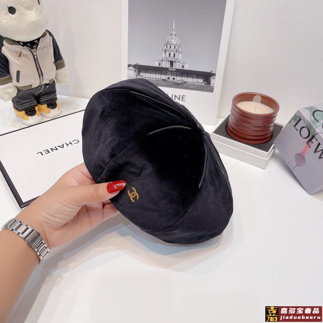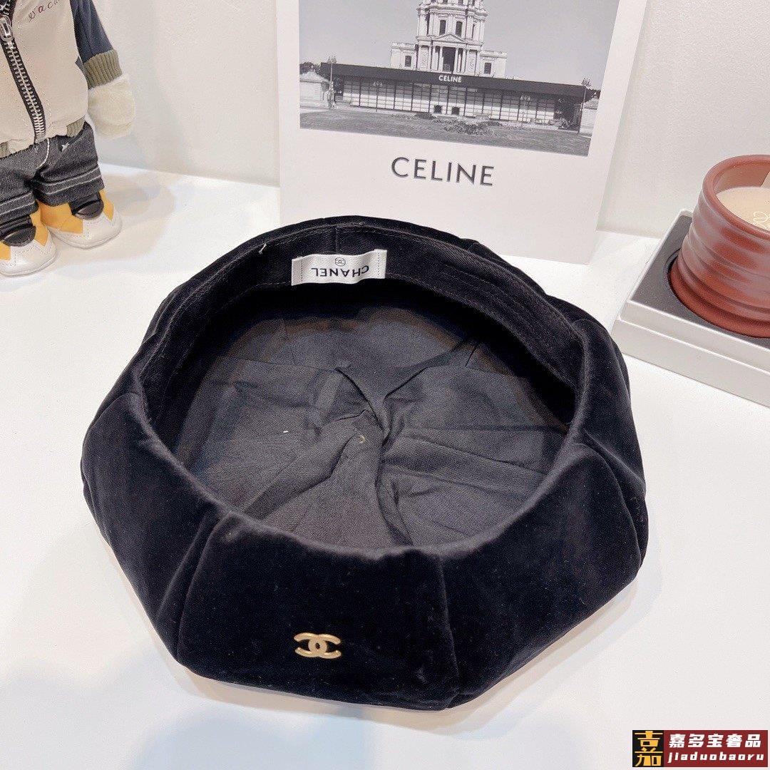香奈儿灯芯绒渔夫帽秋冬简约大气渔夫帽黑米卡其三色头围