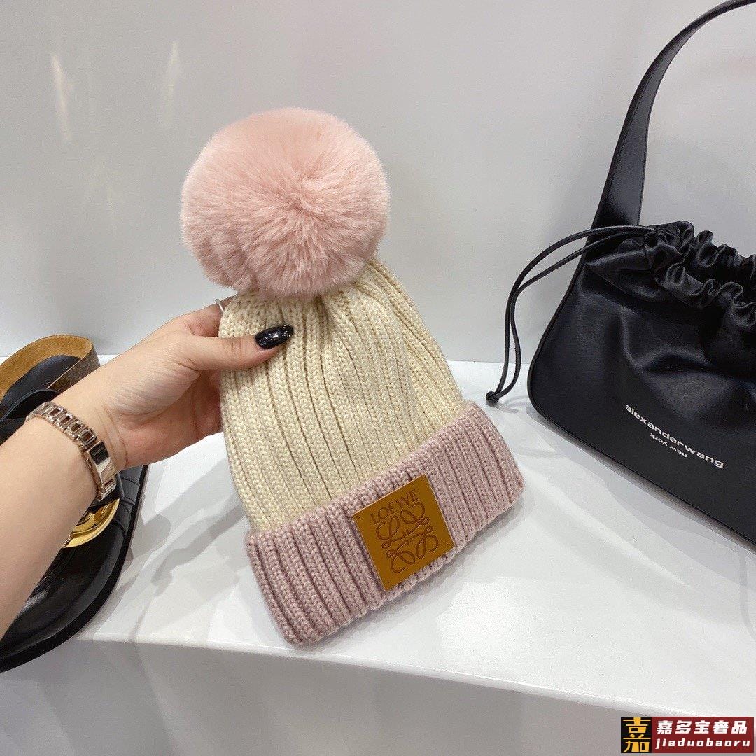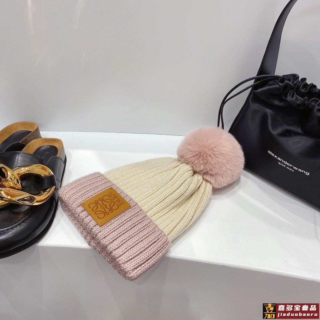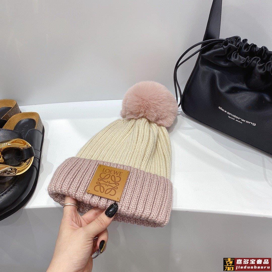 罗意威秋冬款毛球针织双层加厚针织帽个性撞色拼接色调都很好看厚