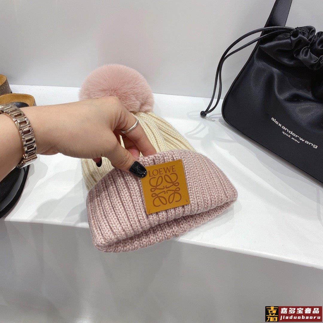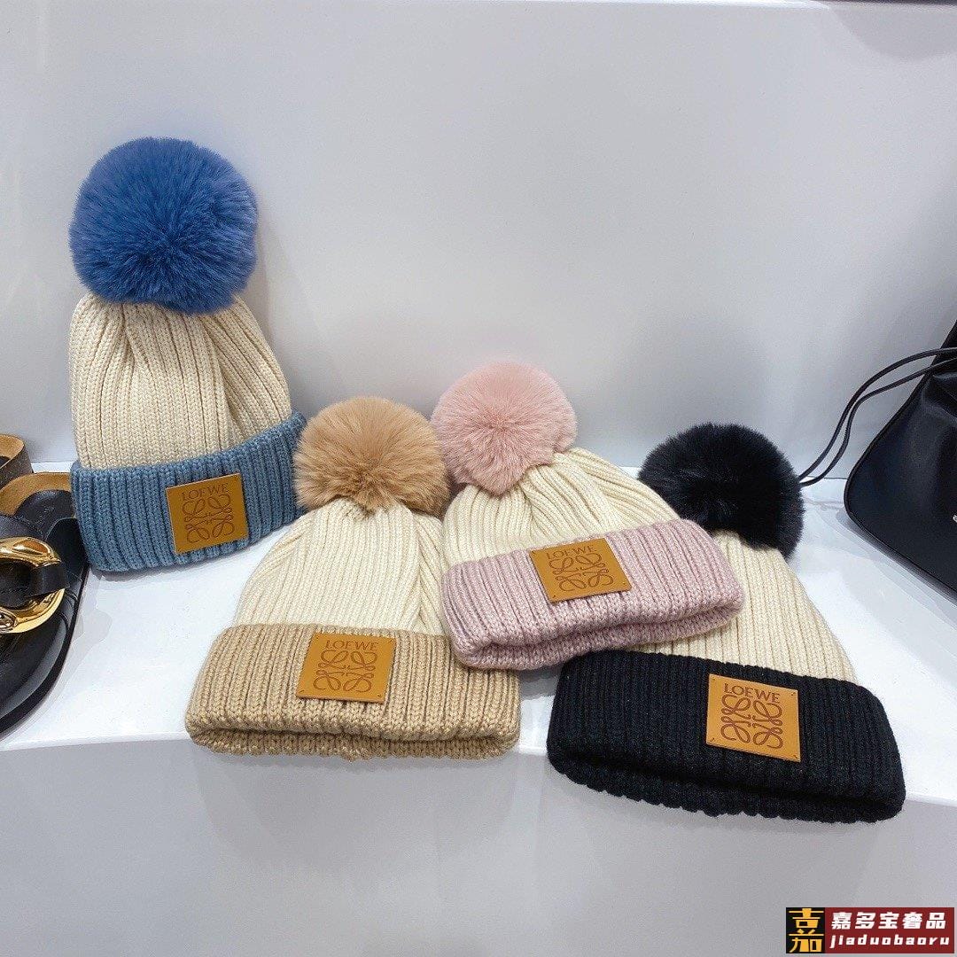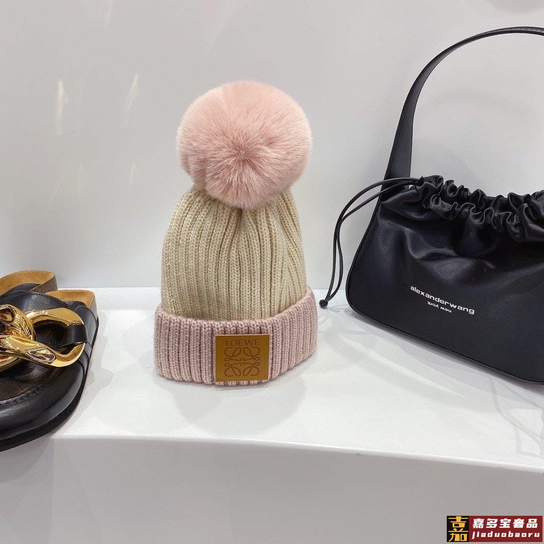 罗意威秋冬款毛球针织双层加厚针织帽个性撞色拼接色调都很好看厚