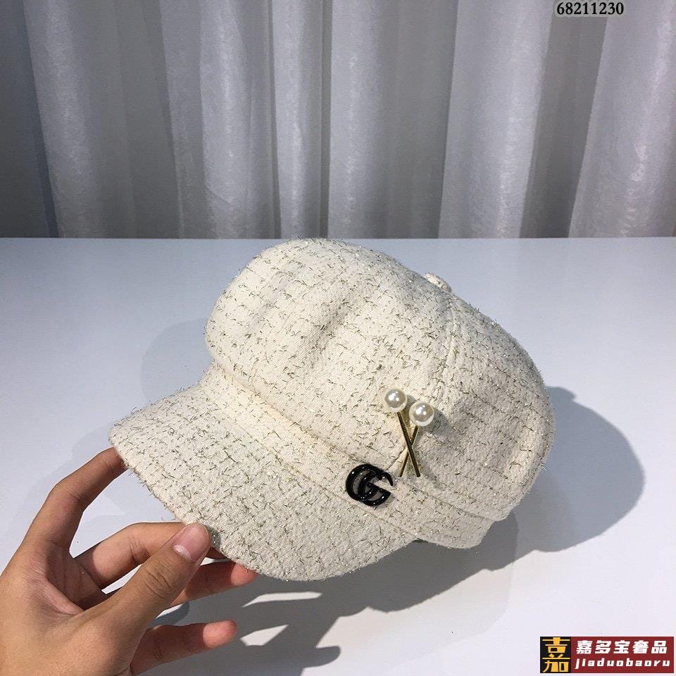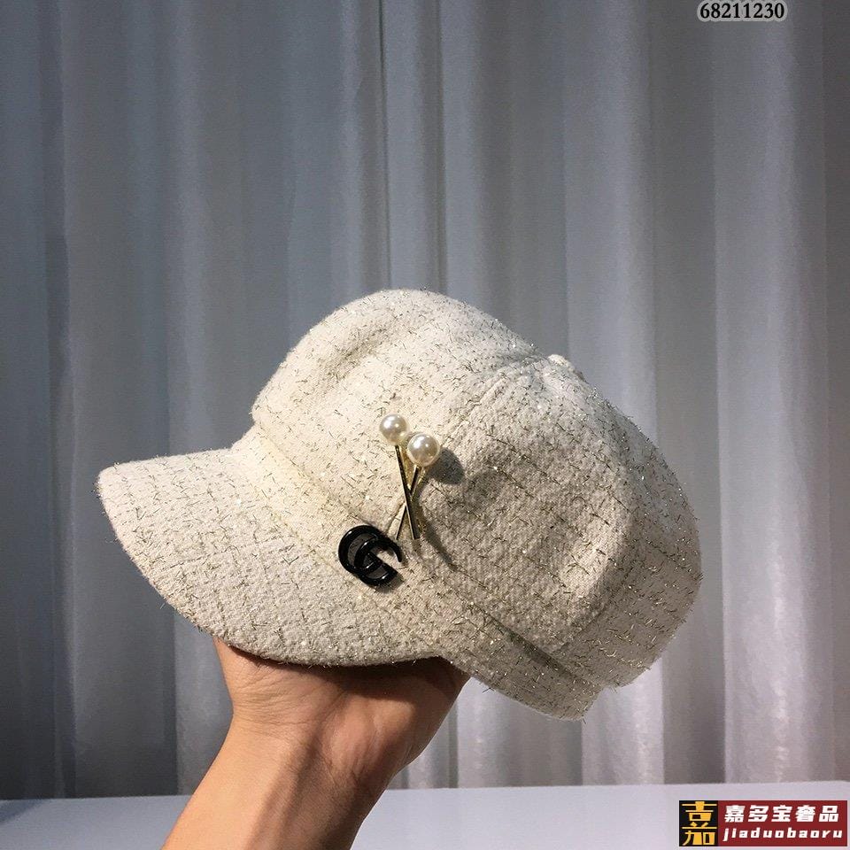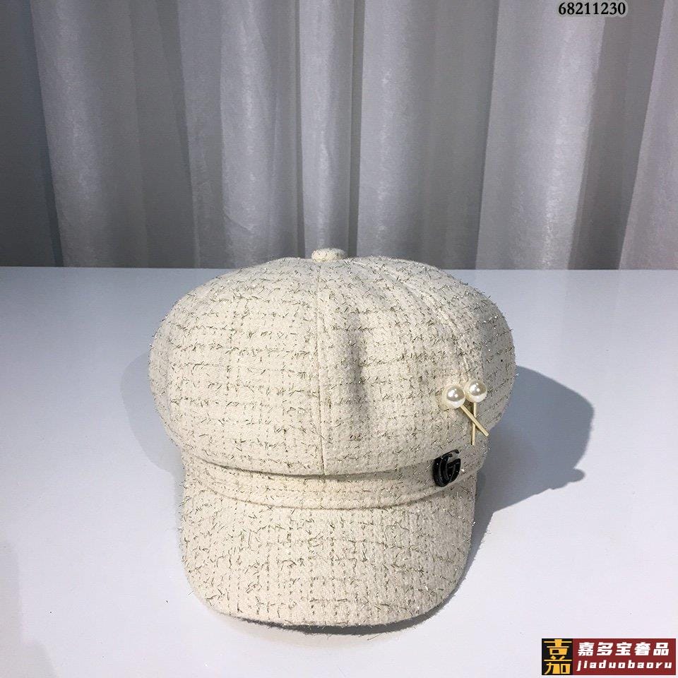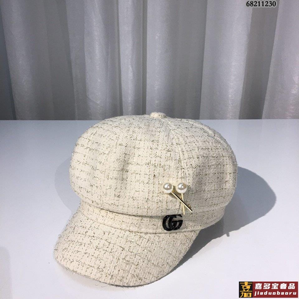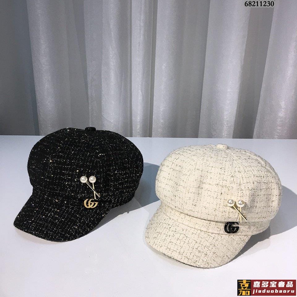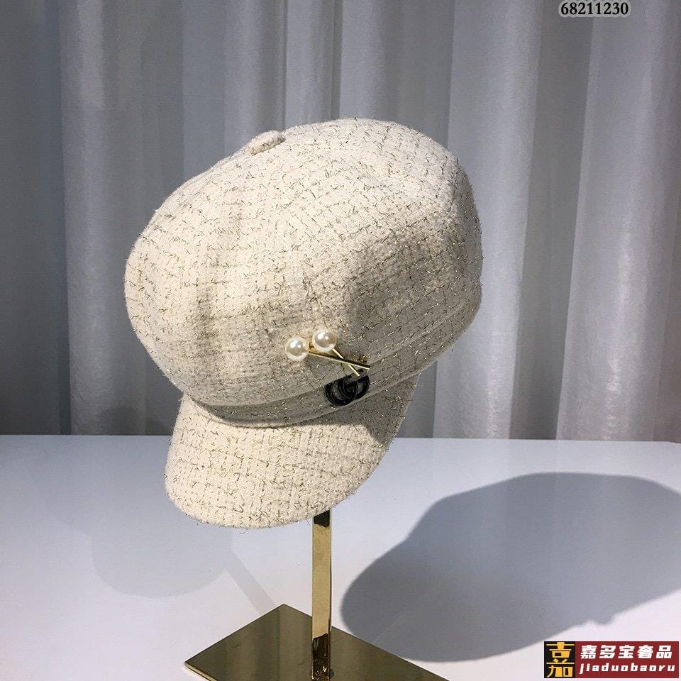 古奇秋冬贝雷帽兔毛海军帽八角帽珠片时尚配饰保暖百搭潮牌